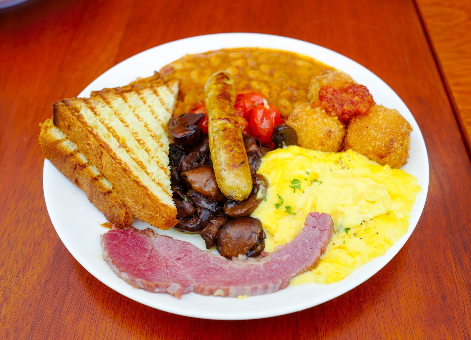 You can add on that signature gravlax to the Big Breakfast, built for hearty eaters, constructed with two eggs, loads of baked beans, roasted garlic tomatoes, confit mushrooms, house-made sausage (lamb or chicken), and your choice of Nutmeg's own-baked bread (toasted brioche or sourdough). Further customisation is possible, so pile on this platter with deep-fried mac-and-cheese, or perhaps beef bacon or salt beef for pure protein power.