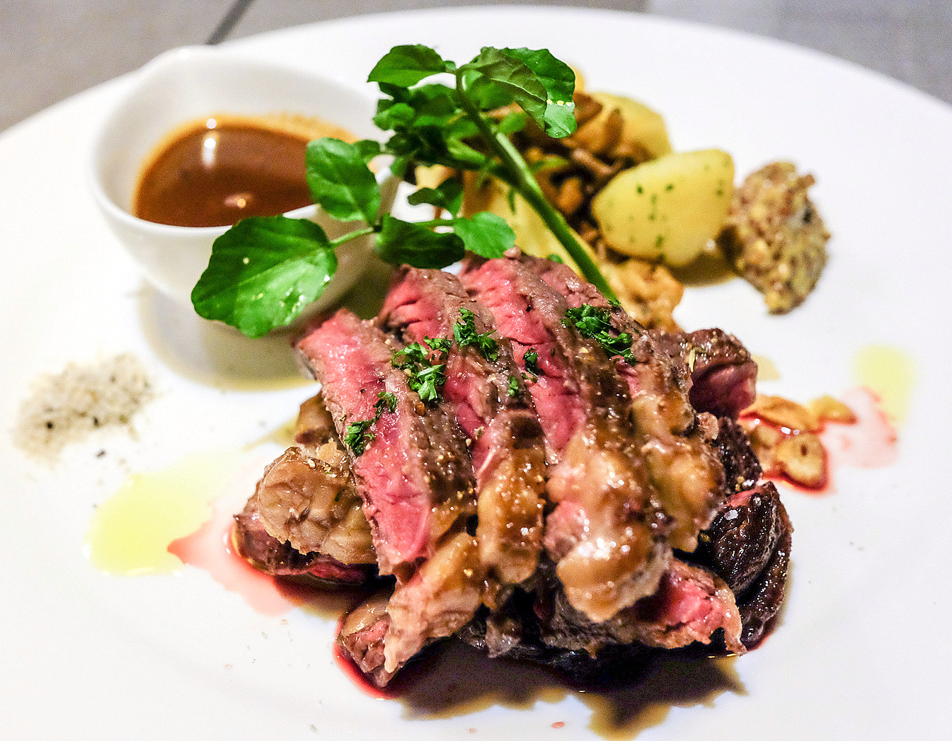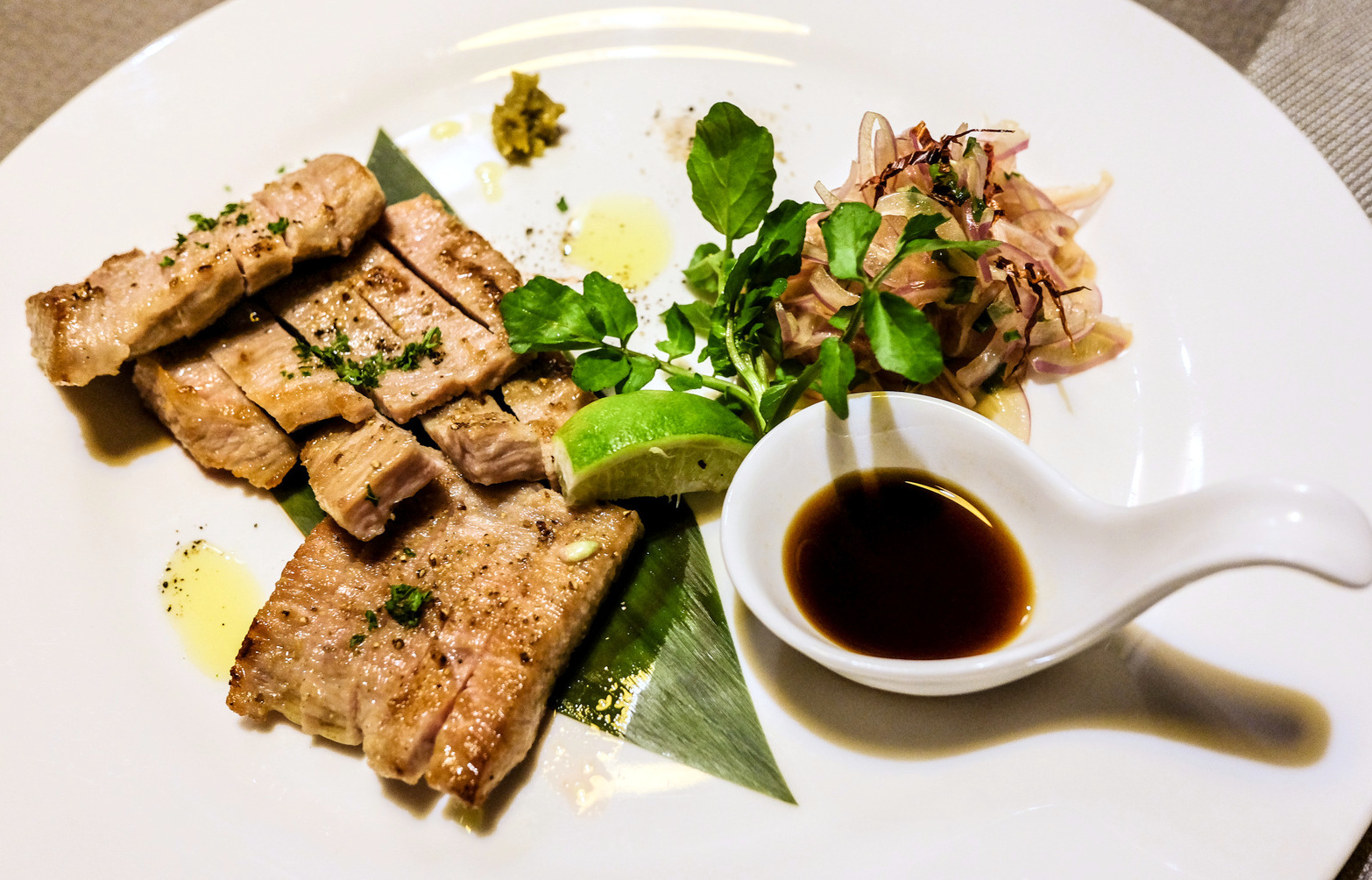 Meat devotees will find plenty to desire as well: The Australian rib-eye steak, irreproachably medium-rare, spotlights the kitchens mastery of technique & balance of ingredients (RM68), while the Iberico tontoro neck cut promises pure porcine pleasure (RM62), both executed with a confident simplicity to let the protein shine, matched with suitable accompaniments.