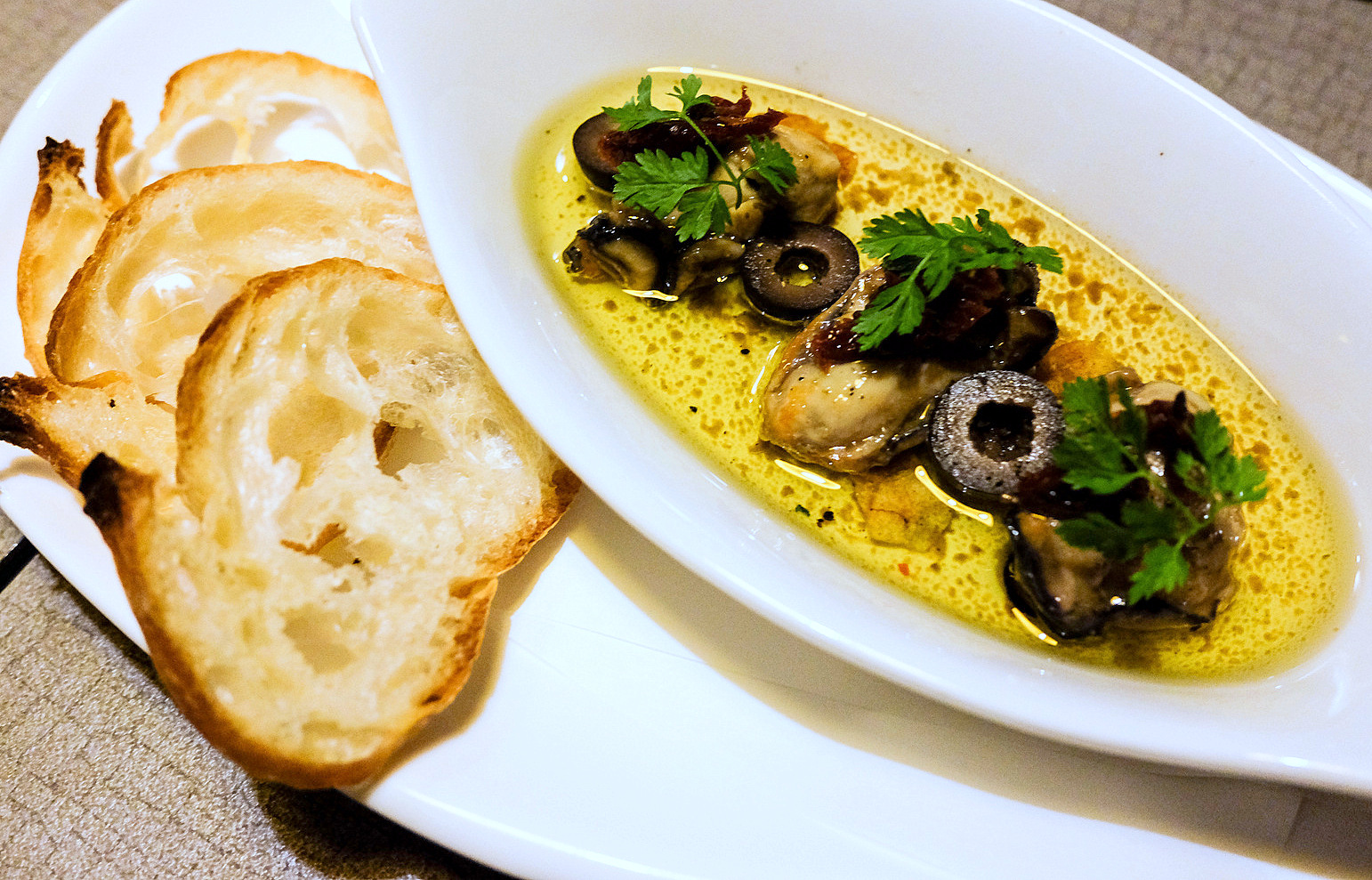 The restaurants strength rests in curating impeccable produce & cooking with imagination & intelligence, ensuring that customers enjoy memorable, mouthwatering medleys of flavours & textures. Bite into the sugar fruit tomato from Japans Kochi prefecture (RM23), vividly juicy with a natural sweetness, & it becomes clear that youre in for a marvellous meal. Molluscs are served hot in heartwarming sauces, paired with thick & crusty bread for a Spanish tapas-style experience - Japanese tsubugai whelk, firm with a smooth chew, emerges garlicky in a nod to the al ajillo preparation (RM68), while oysters, fresh & fleshy, come enhanced with the ripened saltiness of black olives (RM22 for three pieces, RM38 for six).