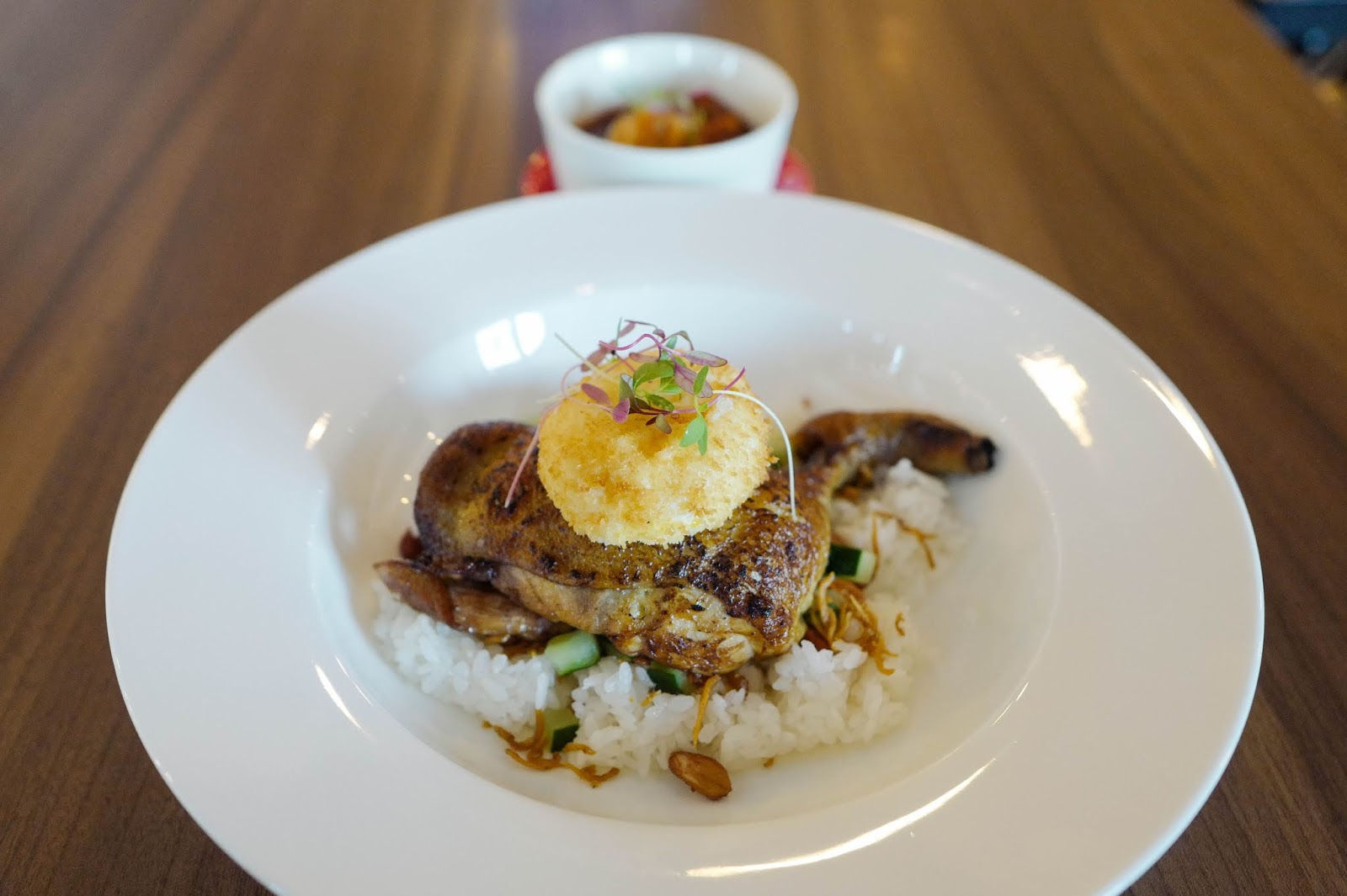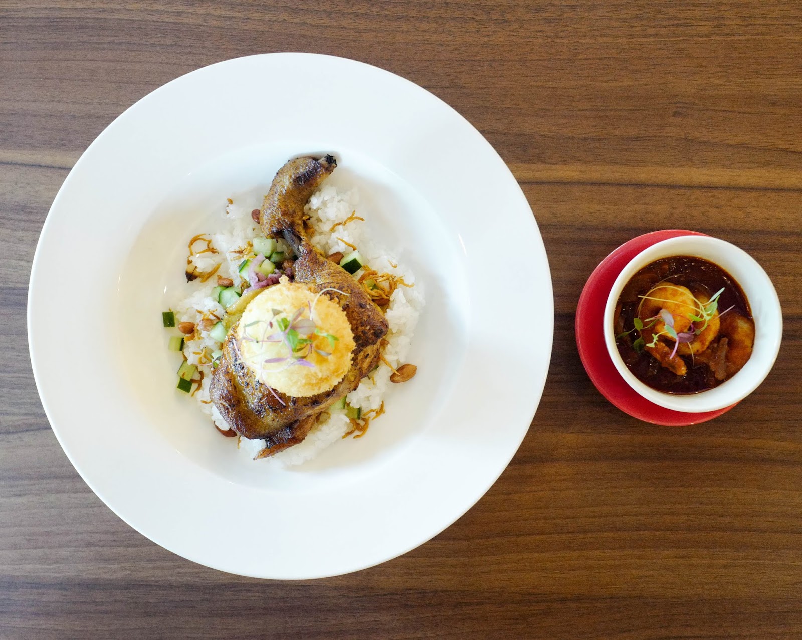 Nasi lemak is ingeniously reimagined too, blending inspirations from East and West - the short-grain rice is infused with coconut oil instead of santan, topped with pandan-scented chicken leg confit and an egg croquette - the only conventional components might be the scattering of peanuts and chopped cucumbers and the side of prawn sambal (RM35 on its own; RM40 with a long black).