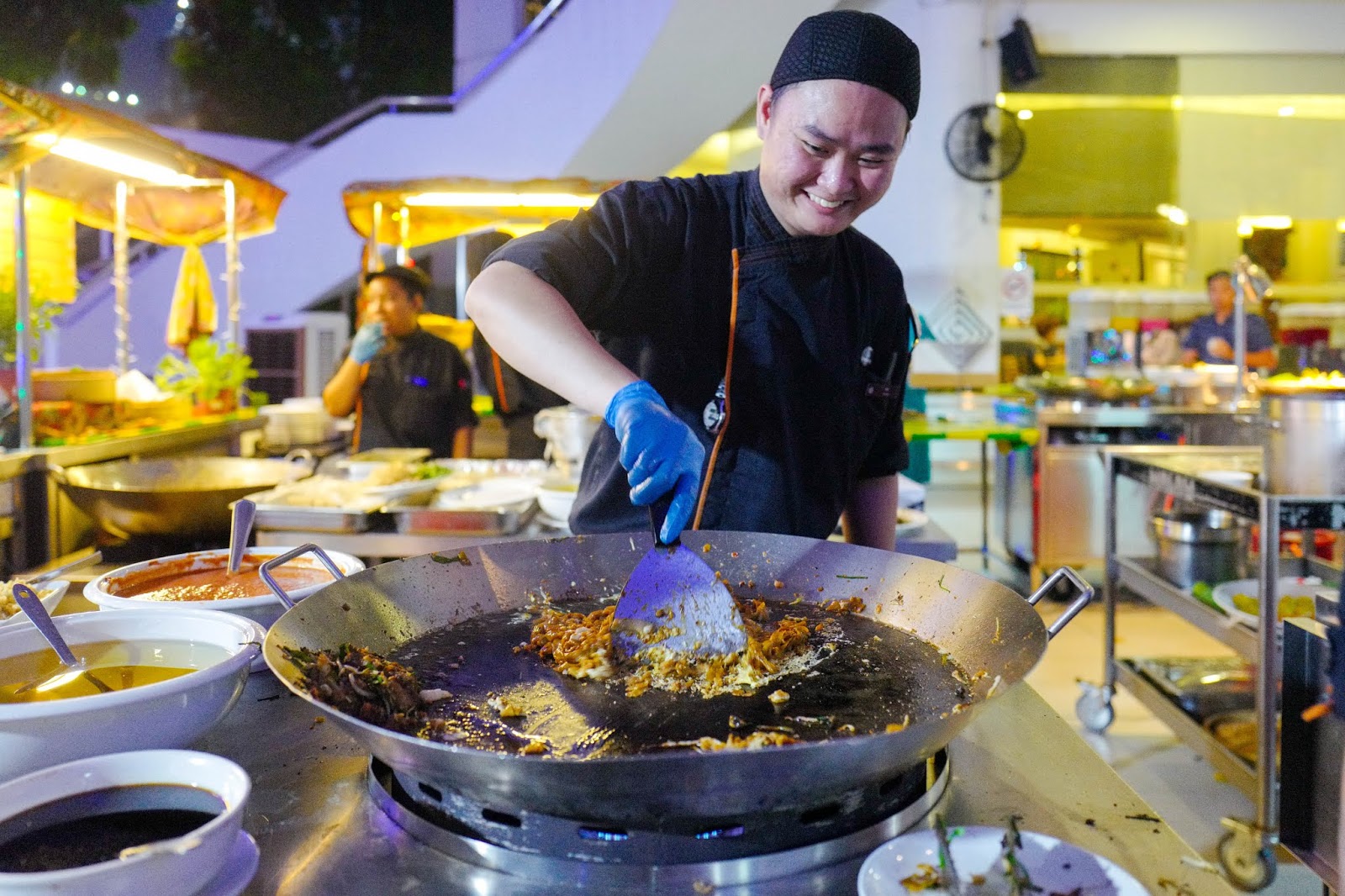 Rows of stalls line the terrace, overlooking the Federal Highway, spearheaded by a kitchen brigade that will freshly cook each ingredient to order for you.