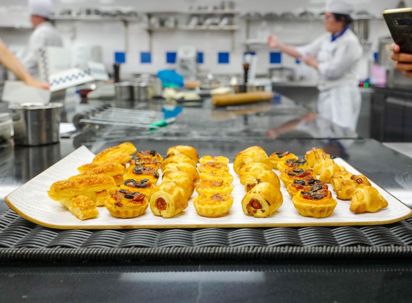 The crucial next steps might seem daunting, but chef Thierry untangled the complexities, demonstrating vividly how to shape the dough into mini croissants with smoked duck breast, sausage puffs, cheese puffs, and cheese olive mini pizzas. It inspired many of us with enough confidence to someday try doing this again at home and surprise our loved ones.