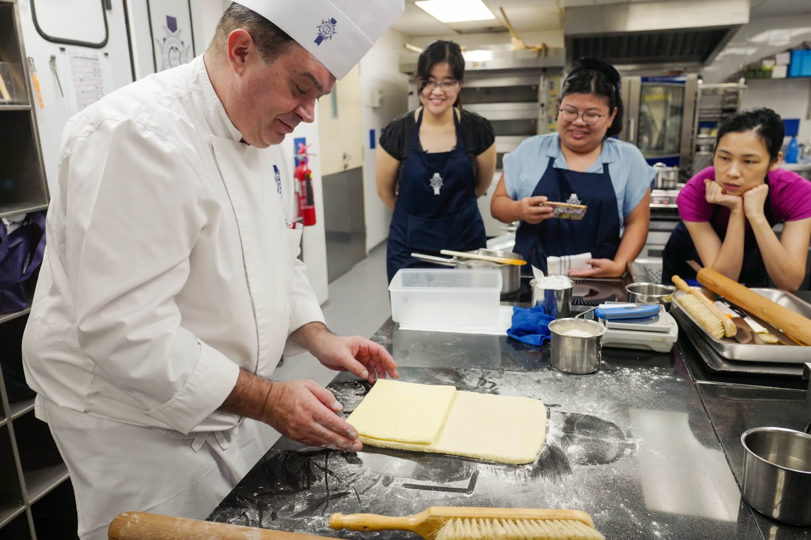 With a friendly smile, chef Thierry kicks off the workshop by weaving together the history of puff pastry's origins in the Middle East and how it's become commonplace in many cultures, with techniques evinced in everything from baklava to paratha.