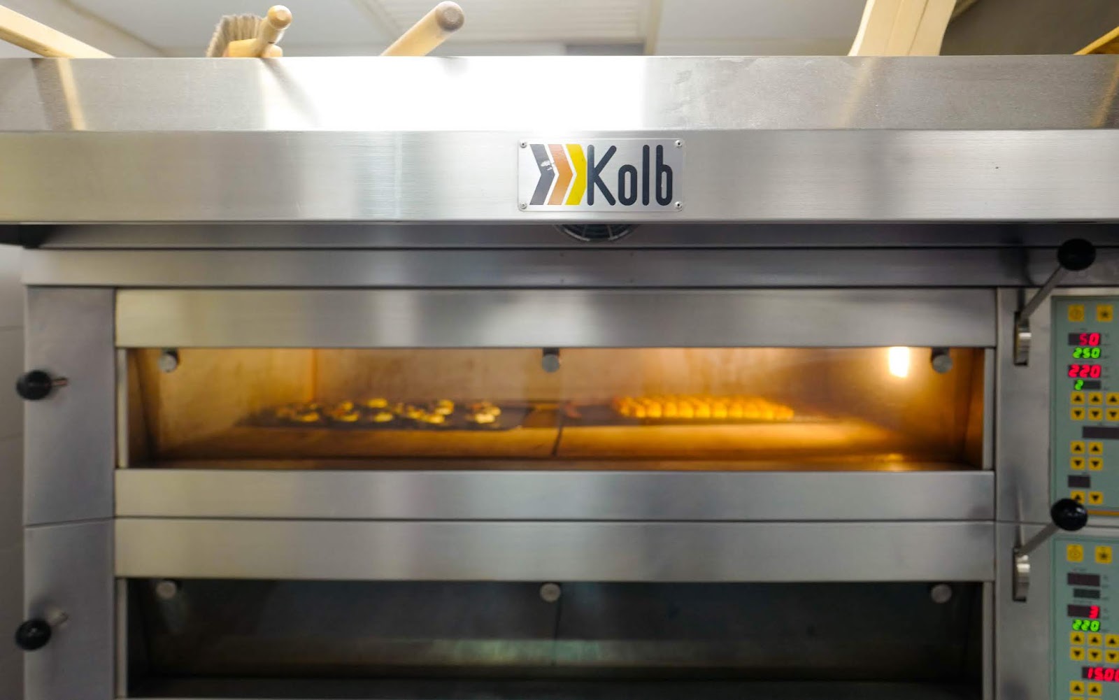 After the dough was stuffed with the appropriate fillings, we watched as the chefs took our handiwork into the Kolb deck ovens, a state-of-the-art staple at artisanal bakeries that churn out large volumes of bread, since you can stack the ovens on top of each other, each baking multiple trays. The oven's heat is transmitted directly through to the tray, into the dough, yielding crispier, crustier bread and pastries.