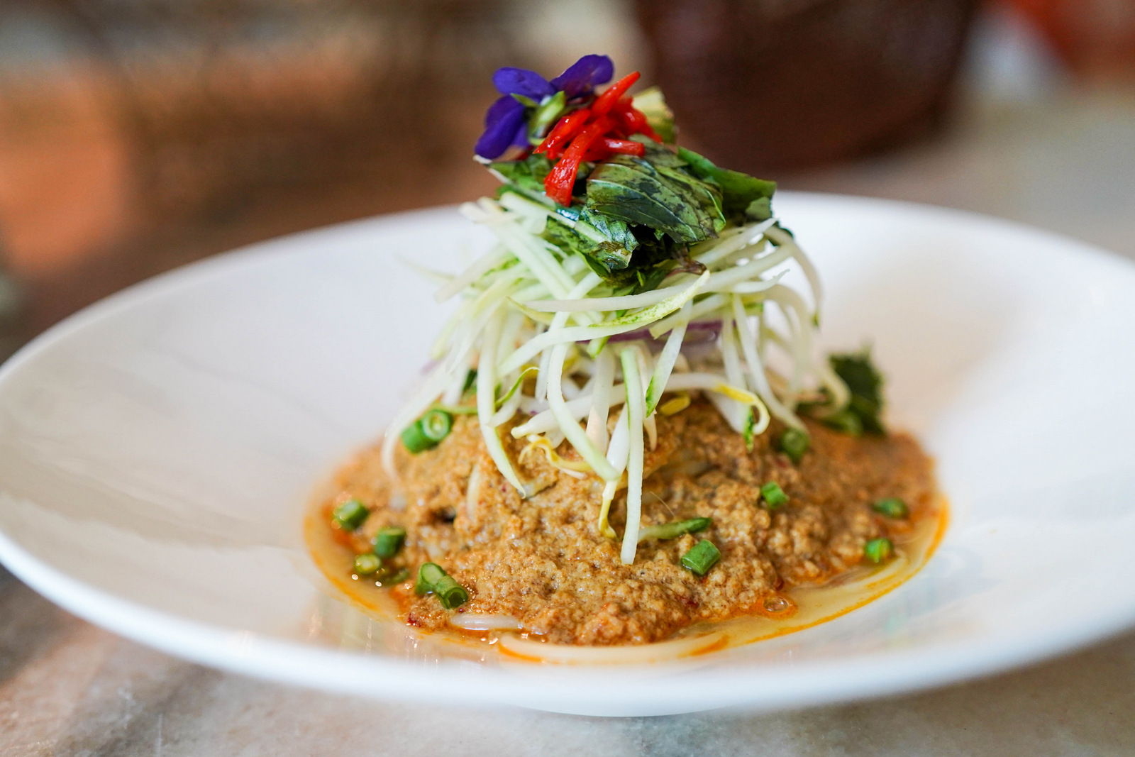 The Pucuk Paku Urab (RM28.99) is another typical-sounding recipe with a subversive twist. Fiddlehead fern tips are lightly blanched and tossed with sambal kelapa and pine nuts, turned into a vegan dish that shuns the stock of shrimp or anchovies. Instead, the umami comes from multiple mushrooms, including shiitake, porcini and oyster mushrooms, chopped and slow-cooked for hours to extract their earthiness.