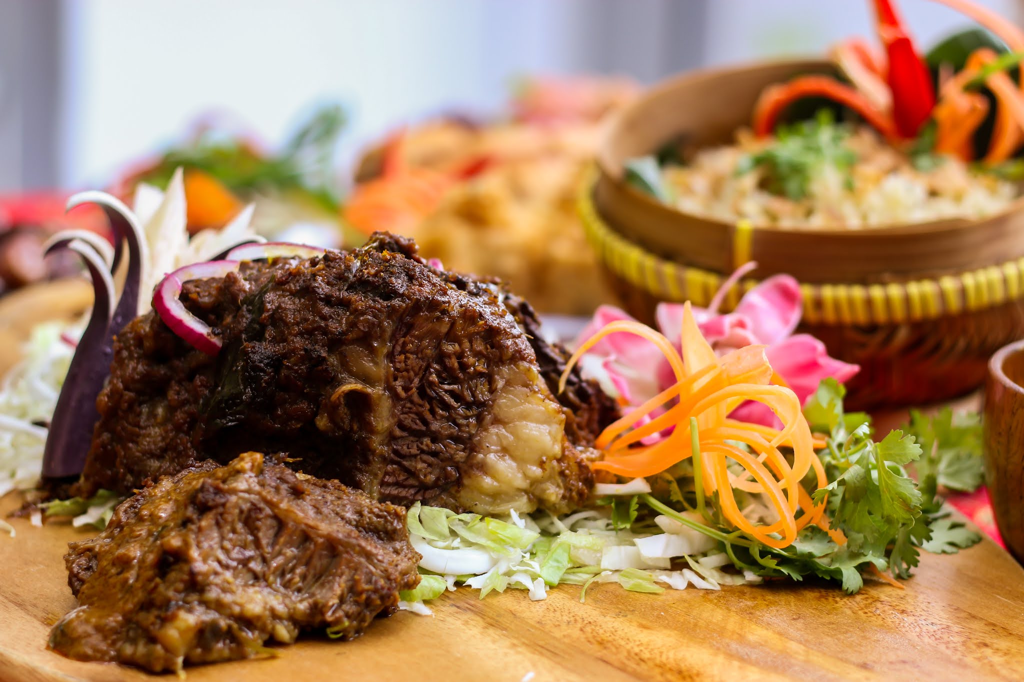 If you love carved meat, your first stop at this buffet should be the beef rendang that's prepared with exceptional effort. The braised brisket is sous-vide cooked for 12 hours, rendering the beef so succulent and steeped in flavour, then baked with the rich, robust rendang sauce that seeps luxuriously into the meat. You'll want second and third helpings of this special standout!