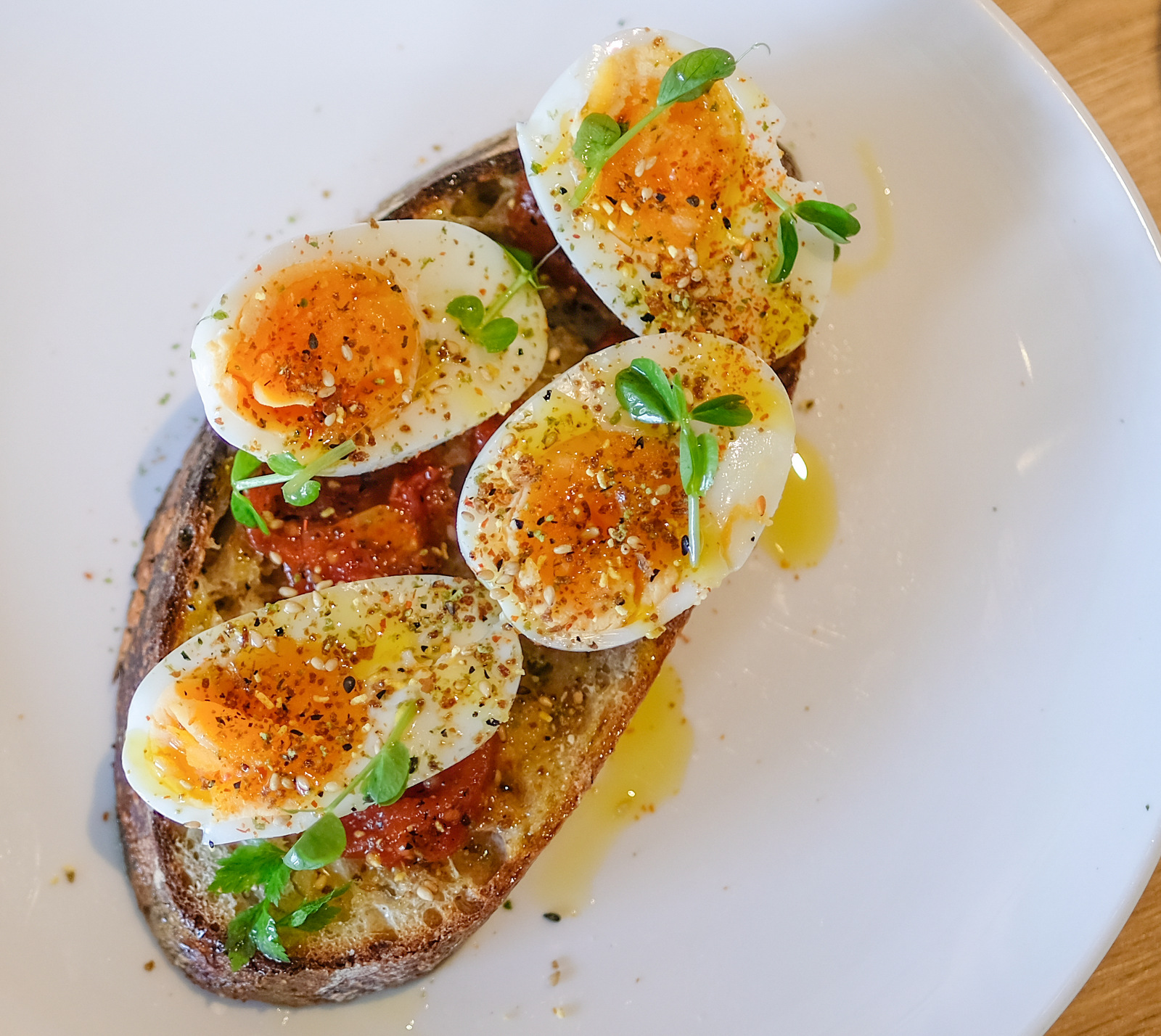Perfect for patrons who rise and shine for a daybreak of gorgeous, golden yolks, Alta's menu - springing up as early as 8 a.m. - is headlined by eggs in multiple preparations, layered proportionately over crisp, chunky sourdough toasts. Organic eggs, slow-boiled for six minutes, tender to their core, sit soothingly over their fresh, Sitka-baked base, with a flutter of furikake bringing a bit of the ocean's brine to each bite (RM15), while scrambled eggs come satisfyingly creamy, made extra-textured with confit chilli peppers and upliftingly tastier with salsa verde (RM21).