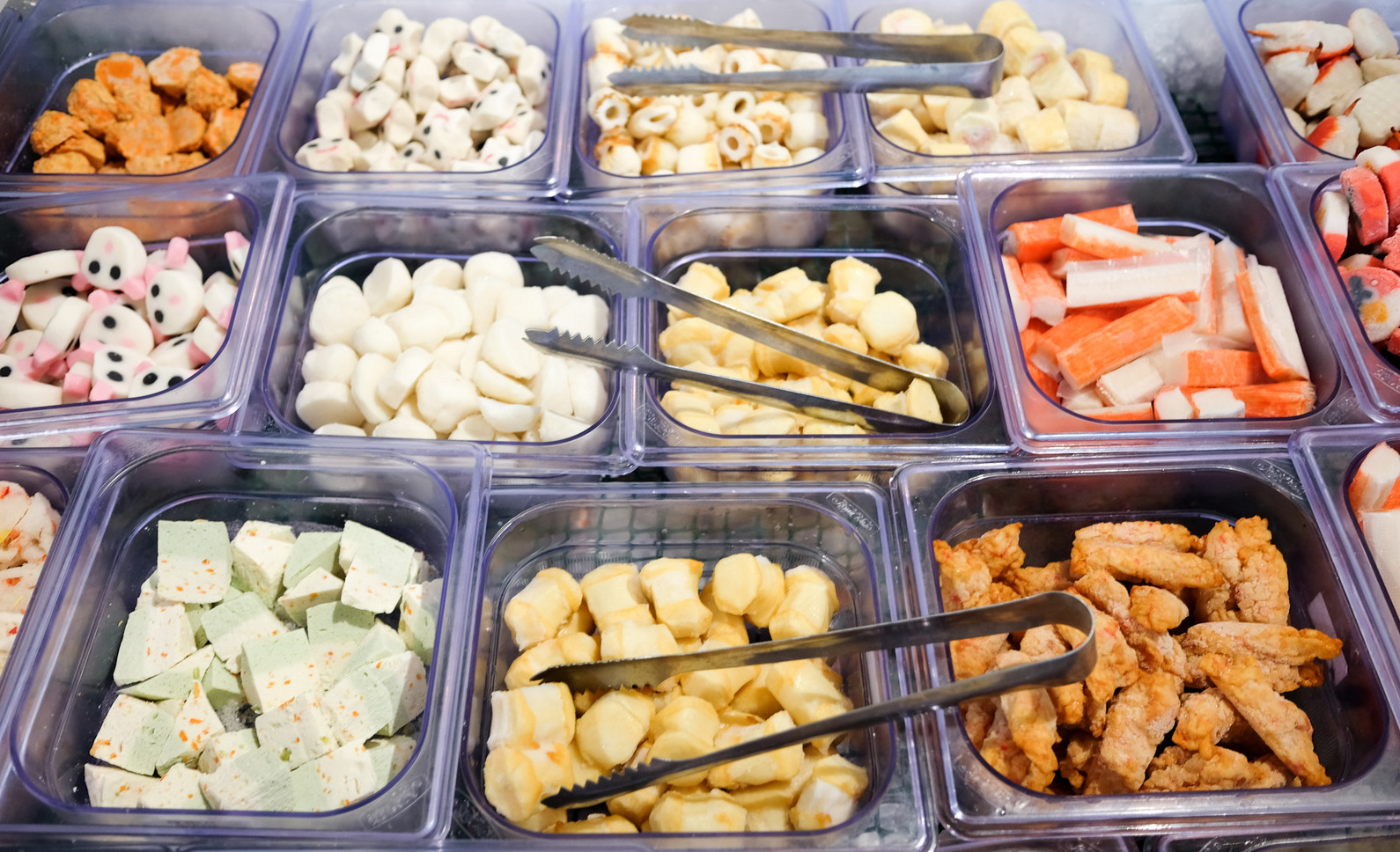 All-you-can-eat dinners are Asaps raison detre: Every evening from six to midnight, the buffet counters are filled to flowing with plenty of raw protein - beef, chicken, lamb & fish are the scene stealers, distinctively available in an array of marinades that showcase various herbs & spices - plus prawns, squid & shellfish, & a dizzying diversity of sliced sausages, crab sticks, seafood cakes & yong tau foo, with no lack of eggs, noodles, mushrooms & vegetables to ensure no customer leaves hungry.