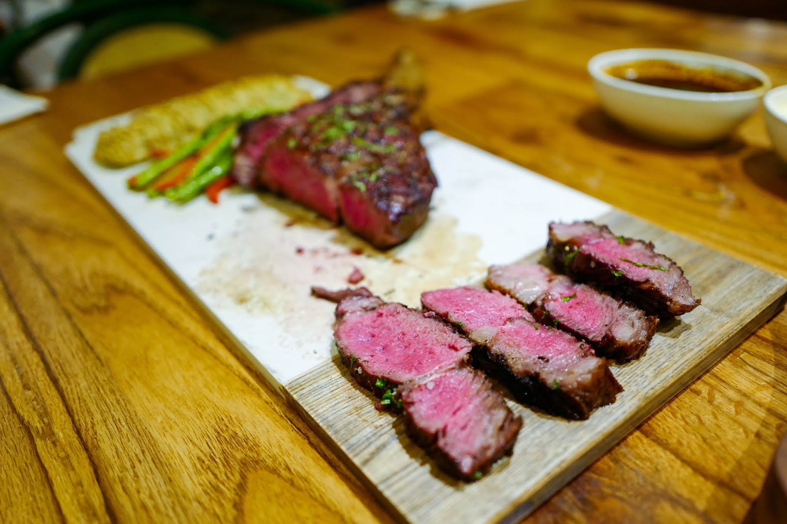 The result is worth the effort - Bo's monster-sized rib steak, rich in inter-muscular fat, is a testament to the buttery silkiness of top-flight beef that's prepared right, its caramelised crust yielding to buttery moistness, with each juicy bite conveying a subtle sweetness and sensuous sizzle.