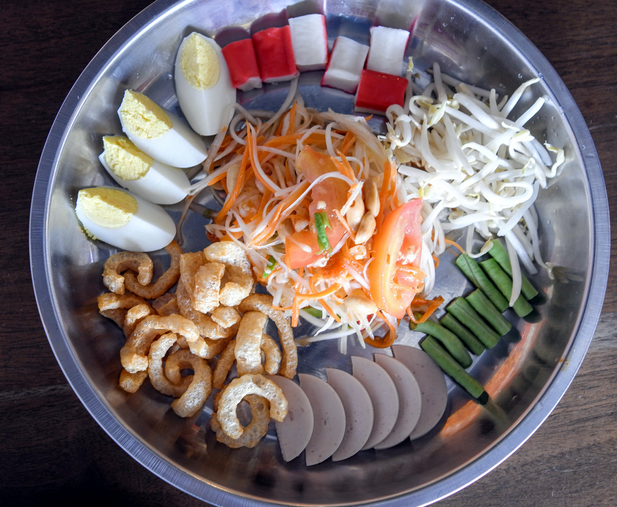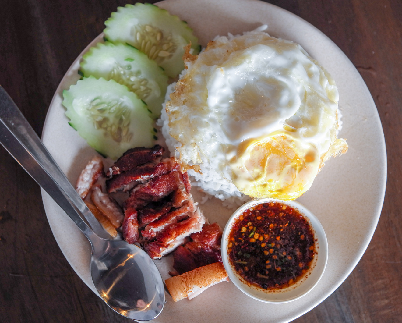 The couple's dedication shines through in every bowl, with much of herbs, spices & other ingredients such as sausages brought in from Thailand or painstakingly prepared in Boran's kitchen (even the bowls are Thai-made). Tom Sap Pork Ribs are a terrific introduction - a light, clear broth, pleasantly tangy & mildly spicy, aromatic with lemongrass & galangal, topped with tender meat; have it on its own (RM11.90) or with Thai noodles or bee hoon (RM12.50; our choice) or with rice & an omelette (RM13.90). If you prefer a richer base, the Tom Yum Noodles should hit the spot, with a well-tuned flavour that's lip-smacking to the last spoonful, rounded out with a creamy whole egg (RM7.90 for this regular portion; RM10.90 for the largest serving).