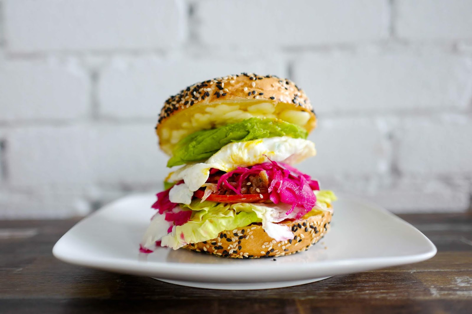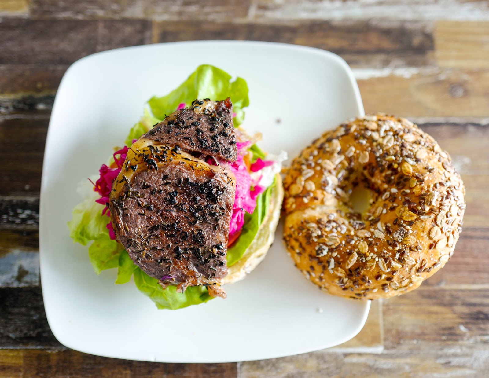 The bagels are built for big appetites, possible for even two light eaters to share for lunch. If you're hungry enough to seemingly eat a cow plus a sheep, the Incredible Hulk is a behemoth of a bagel, towering with Australian beef ribeye, New Zealand seared lamb, house-smoked chicken, fried egg, mozzarella cheese, onion jam, tomatoes, pickles, lettuce and beetroot - stacked with more than sufficient protein, carbs and fibre to sustain you through the longest day (RM26.80).