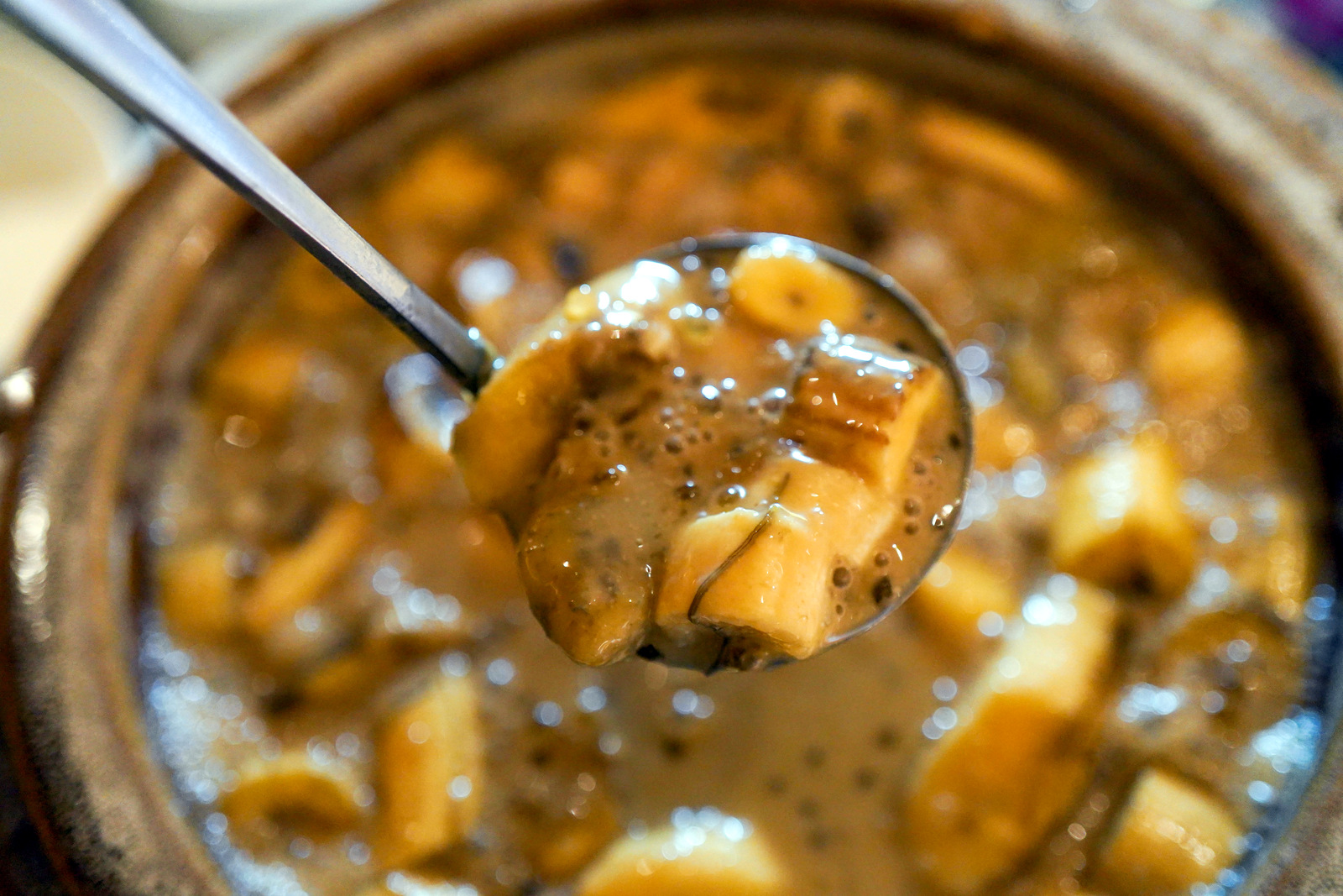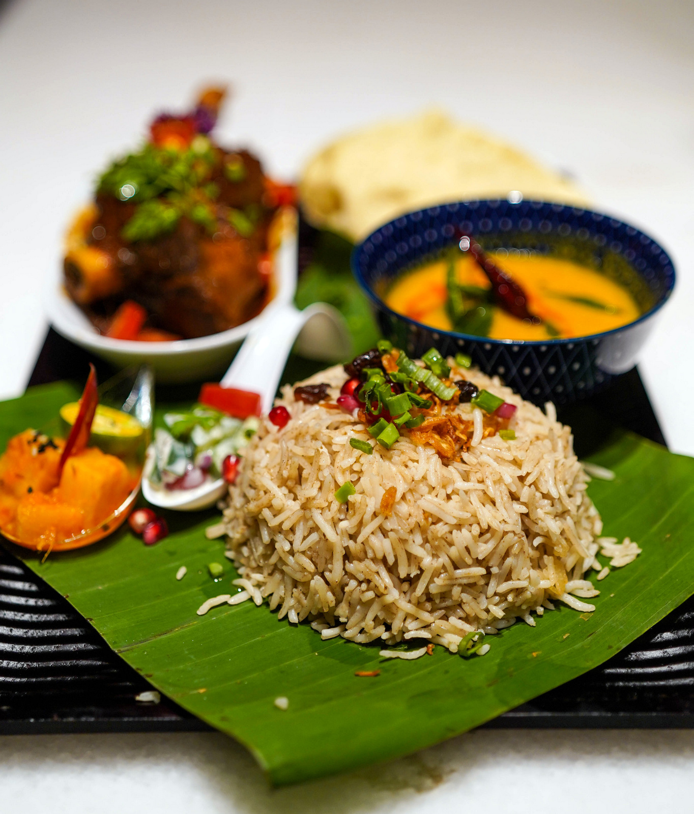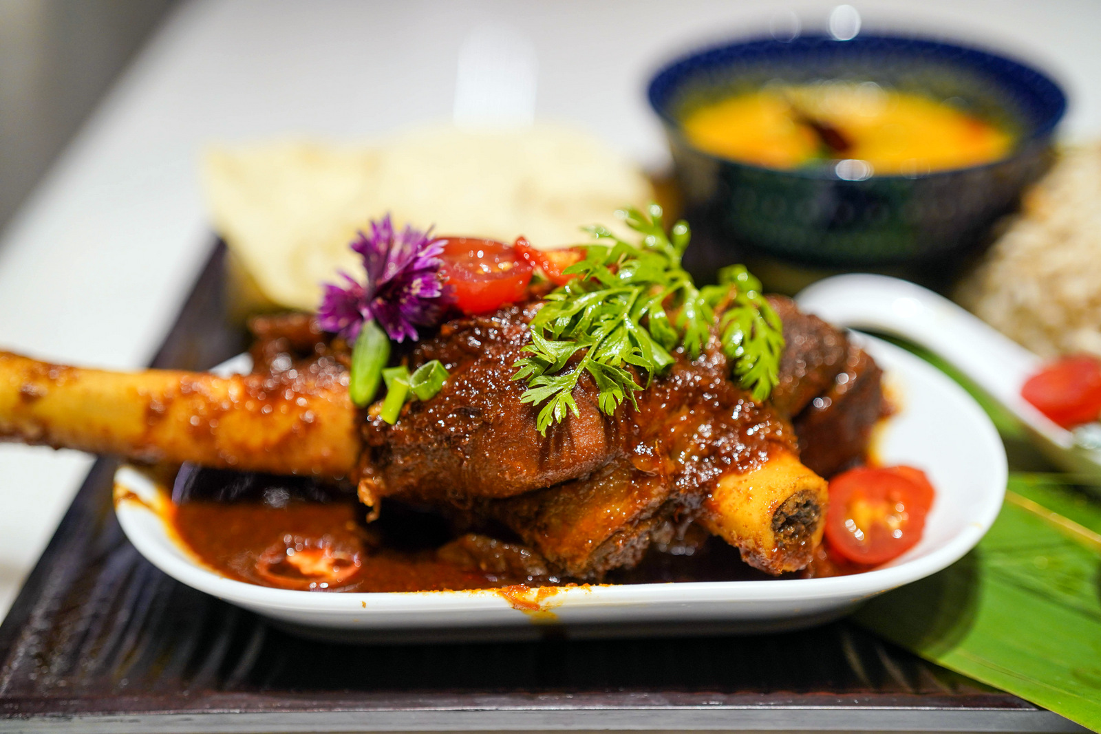 We saved space for our main course, the Kerutup Lamb Shank (available with a surcharge of RM10), a Kelantan-inspired preparation for tender lamb in sweetish curry, well-balanced with fragrant Nasi Bukhari, pineapple chutney, papadom, plus Indian-inspired earthy dhal and tangy raita, and zesty Mediterranean-inflected fattoush.