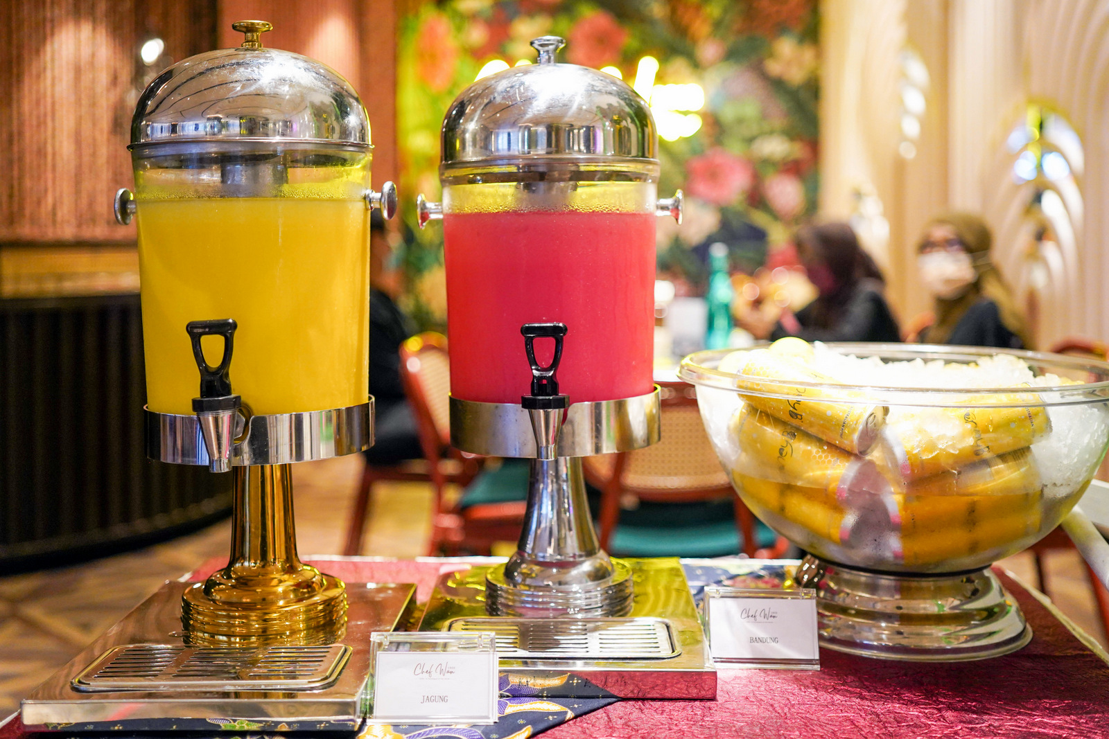 The local sweets section is also appealing - pengat pisang, bubur kacang hijau, kole kacang, sagu kelapa, and nona manis, washed down with air jagung, bandung, kopi, teh tarik and more.
