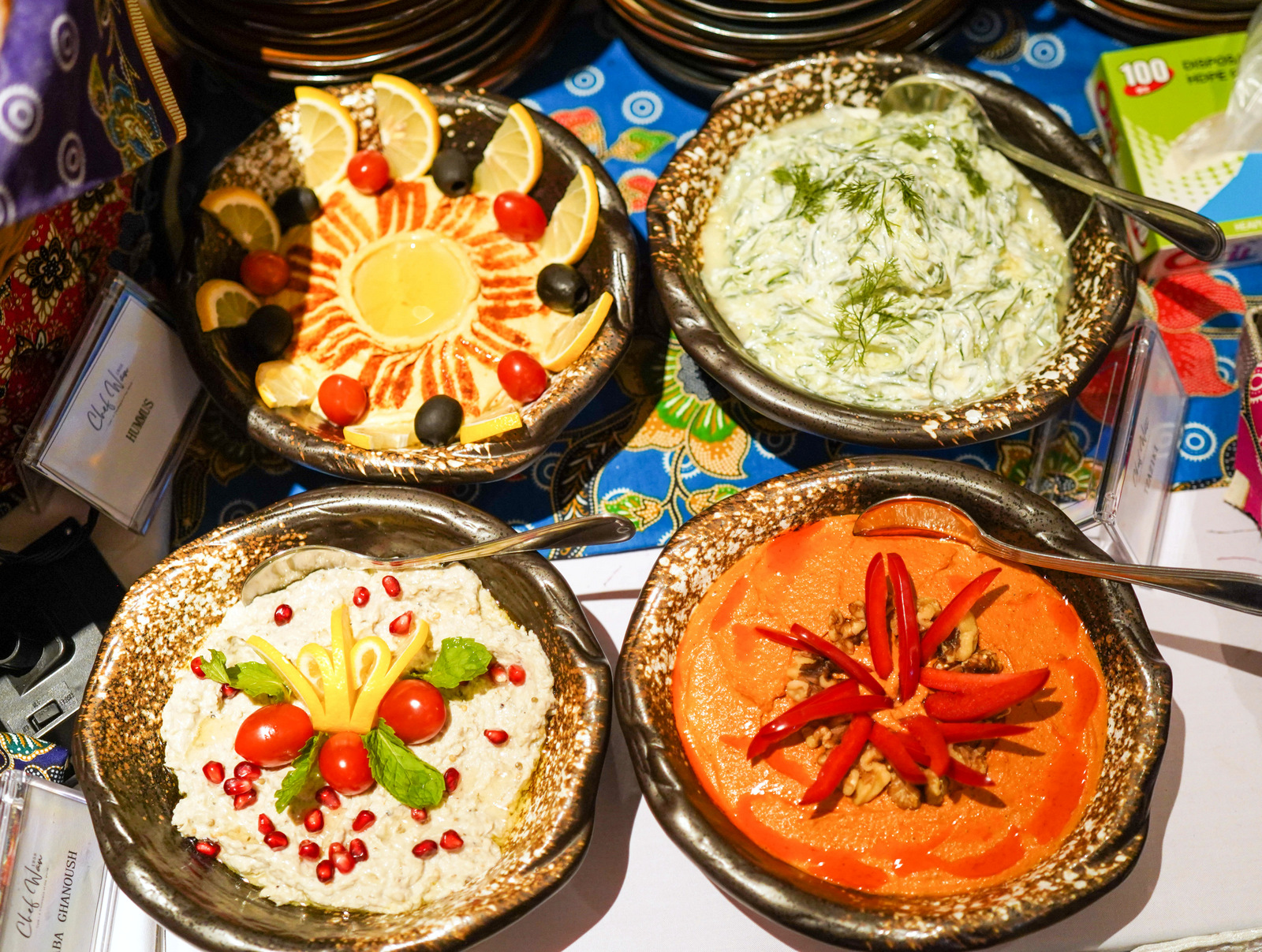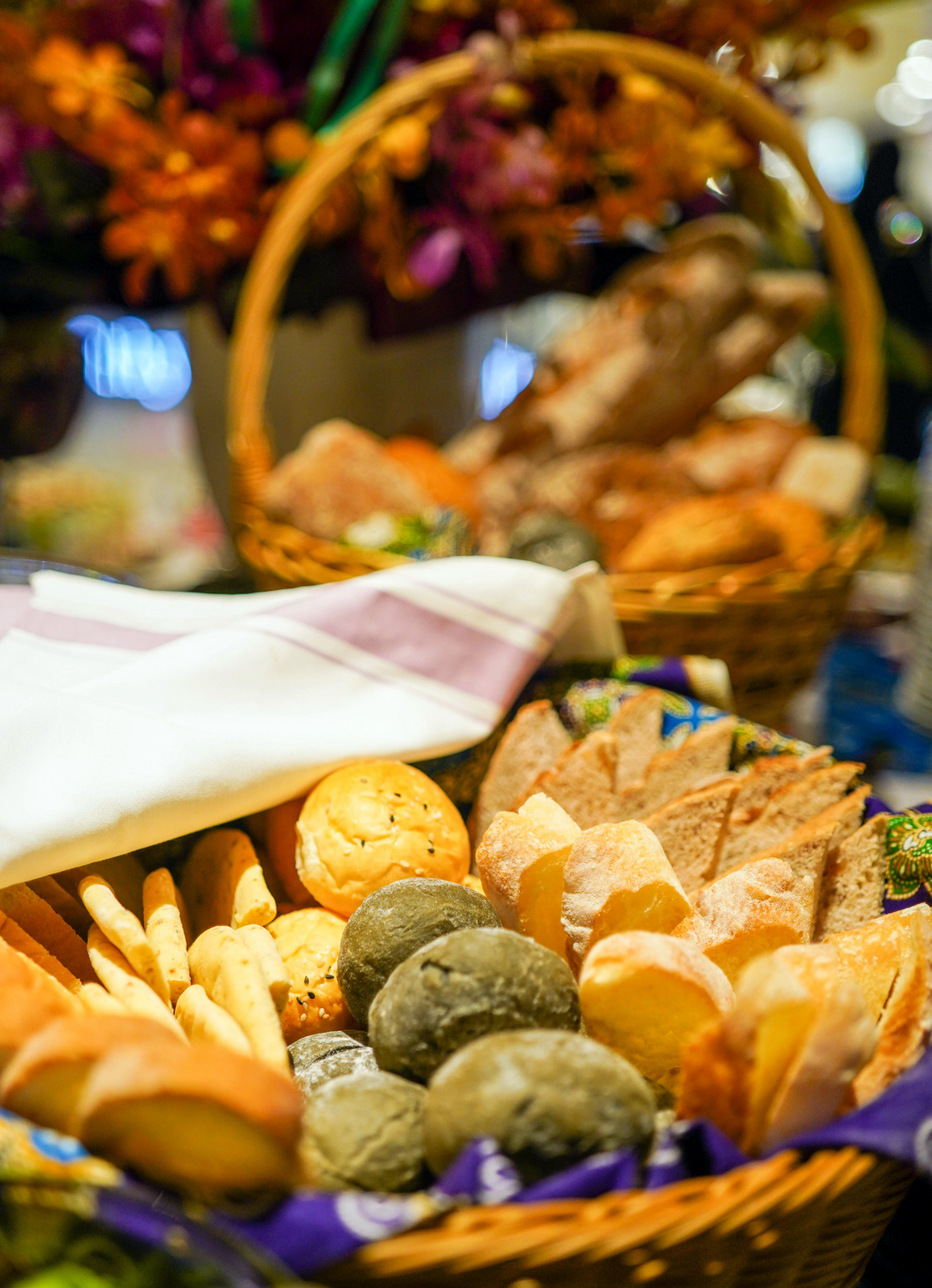 We dug deep into the variety of bread - charcoal buns, ciabatta, baguettes, soft rolls, rye bread and walnut bread - with Middle Eastern-inspired dips like tzatziki, muhammara, baba ghanoush and hummus.