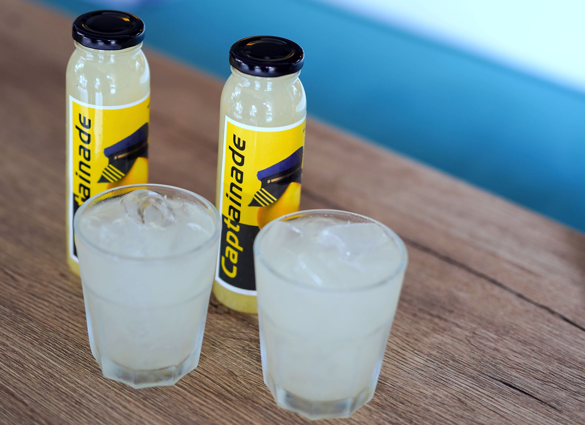 Captainade relies on seasonal lemons for its terrific taste. It currently uses a South African varietal, balanced in sweetness and tang, blended with a bit of sugar and water, with no preservatives, fruit concentrate or artificial flavouring.