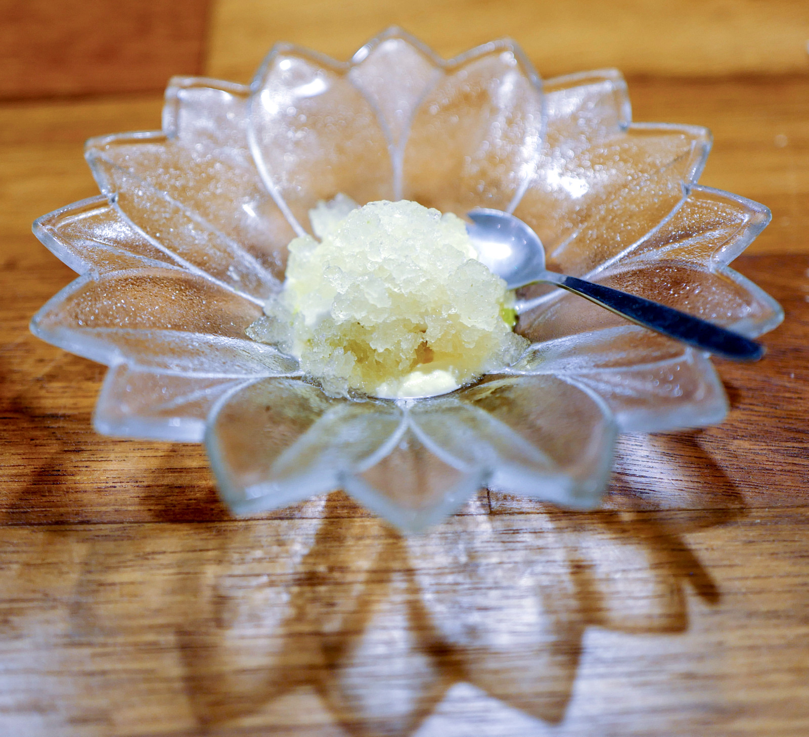 This might be one of those meals that we wish would never end, but an intriguingly potent palate cleanser of coconut sorbet, cooled and warmed with a granita of lime and chilli, heralds the final course, a tribute to the tiny but energy-rich packets of glutinous rice and mashed-up pumpkin that Scorpion savoured during his two years in Bali, sold particularly at before-sunrise markets during the festival of Galungan, Bali's equivalent of Diwali.