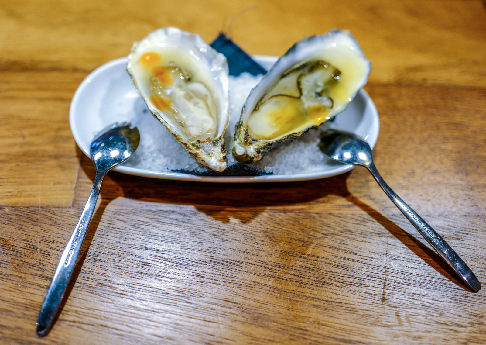Start with a beautiful union of bread and butter - Jing Ze's own sourdough offers a confidently luscious chew complemented by the silkiest house-smoked butter, defiantly decadent - before diving for Irish oysters, distinctively dressed in lacto-fermented cucumber water (a byproduct of the restaurant's fermentation program that it conducts upstairs) to add a dimension of acidity that snaps into focus beyond a plain lemon; the result is a punchy, piquant brininess with a finely calibrated hint of chilli oil heat that brings it all home in the end, perfect for patrons seeking a reinvigorating way to make oysters your world.