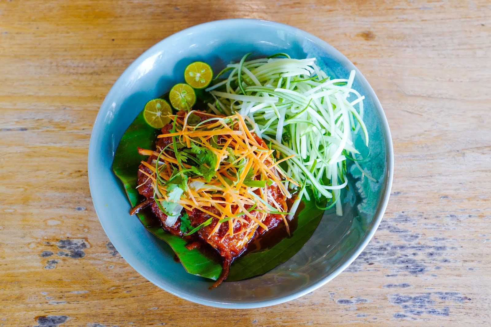 The secret rests in Jom Laksa's rich, robust broth, boiled overnight with all the ingredients intact, blended with bunga kantan, daun kesum and galangal; crushed mackerel is added before the broth is boiled for two further hours before serving. The result of this painstaking preparation: Sips to be savoured slowly, yielding a genuine depth of flavour that balances briny and herbaceous notes.