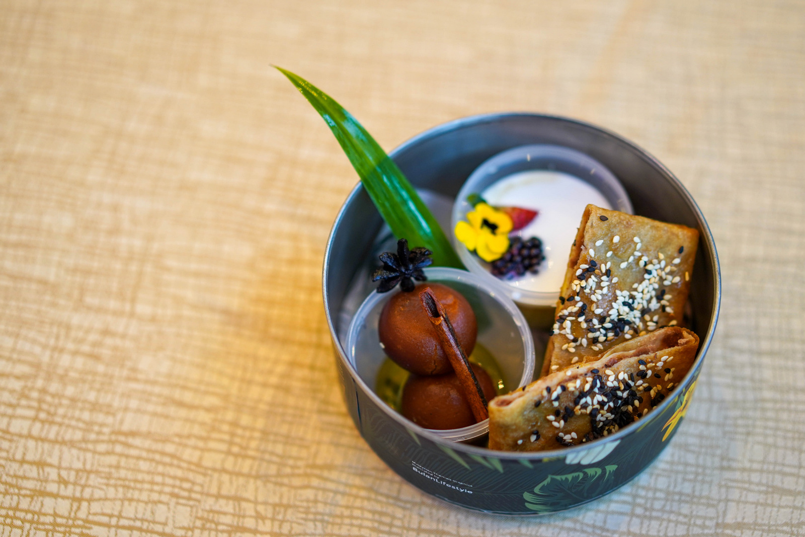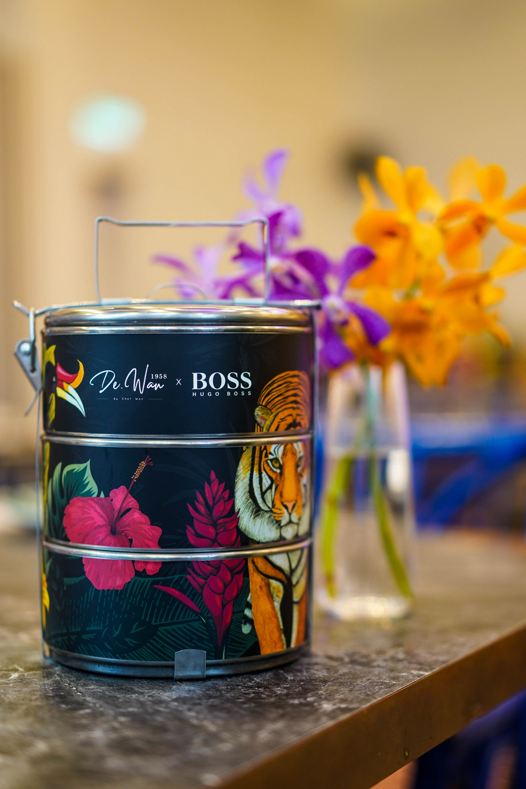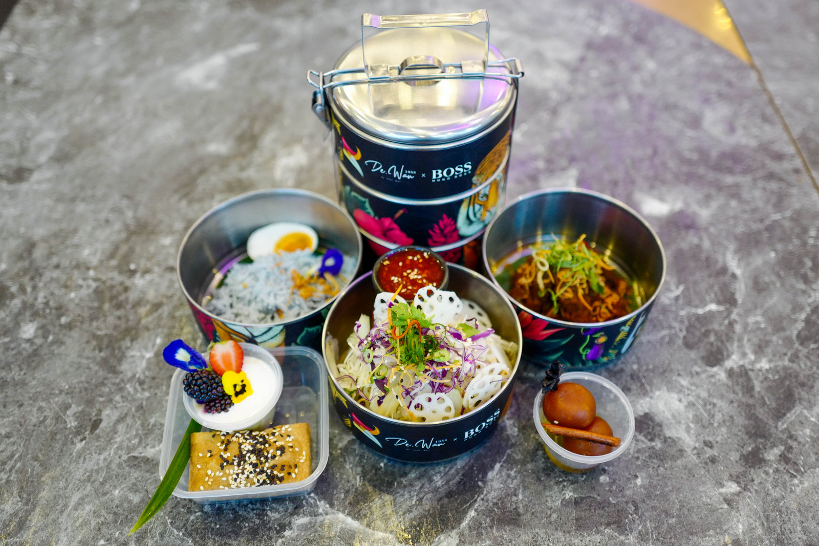 With every order of this menu, customers receive a limited-edition MY Unity tiffin illustrated by Malaysian talent Tiffany Choong, celebrating the country's diverse flora and fauna, including the Malayan tiger to raise awareness for its protection.