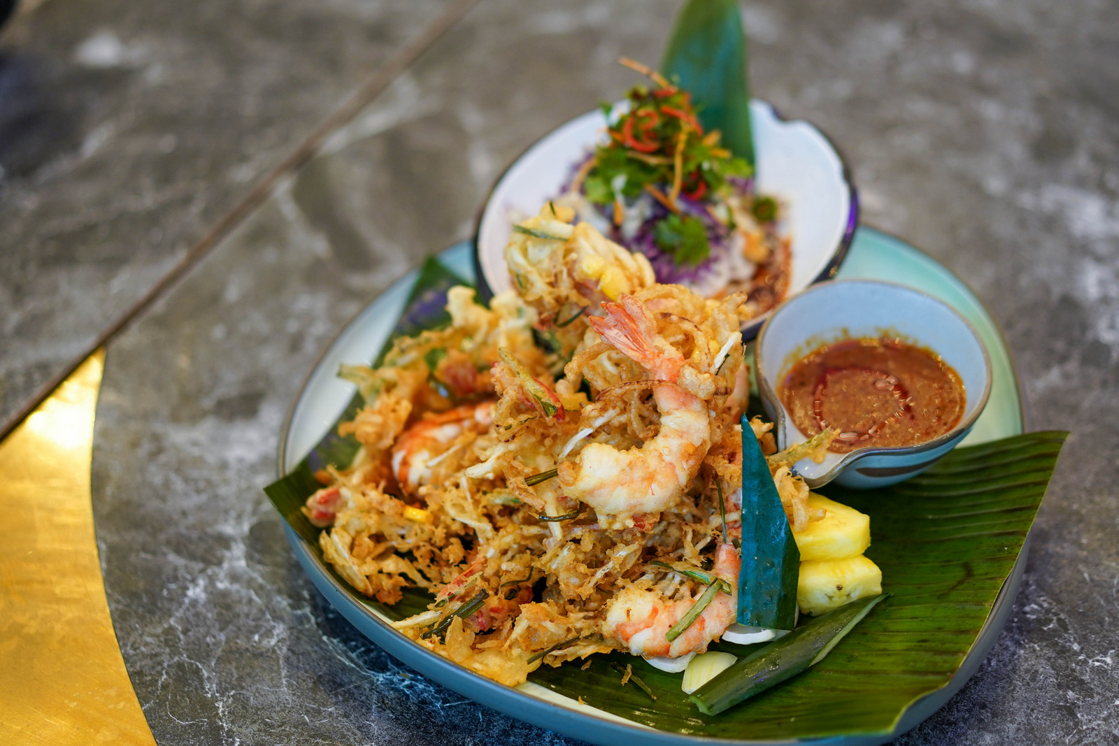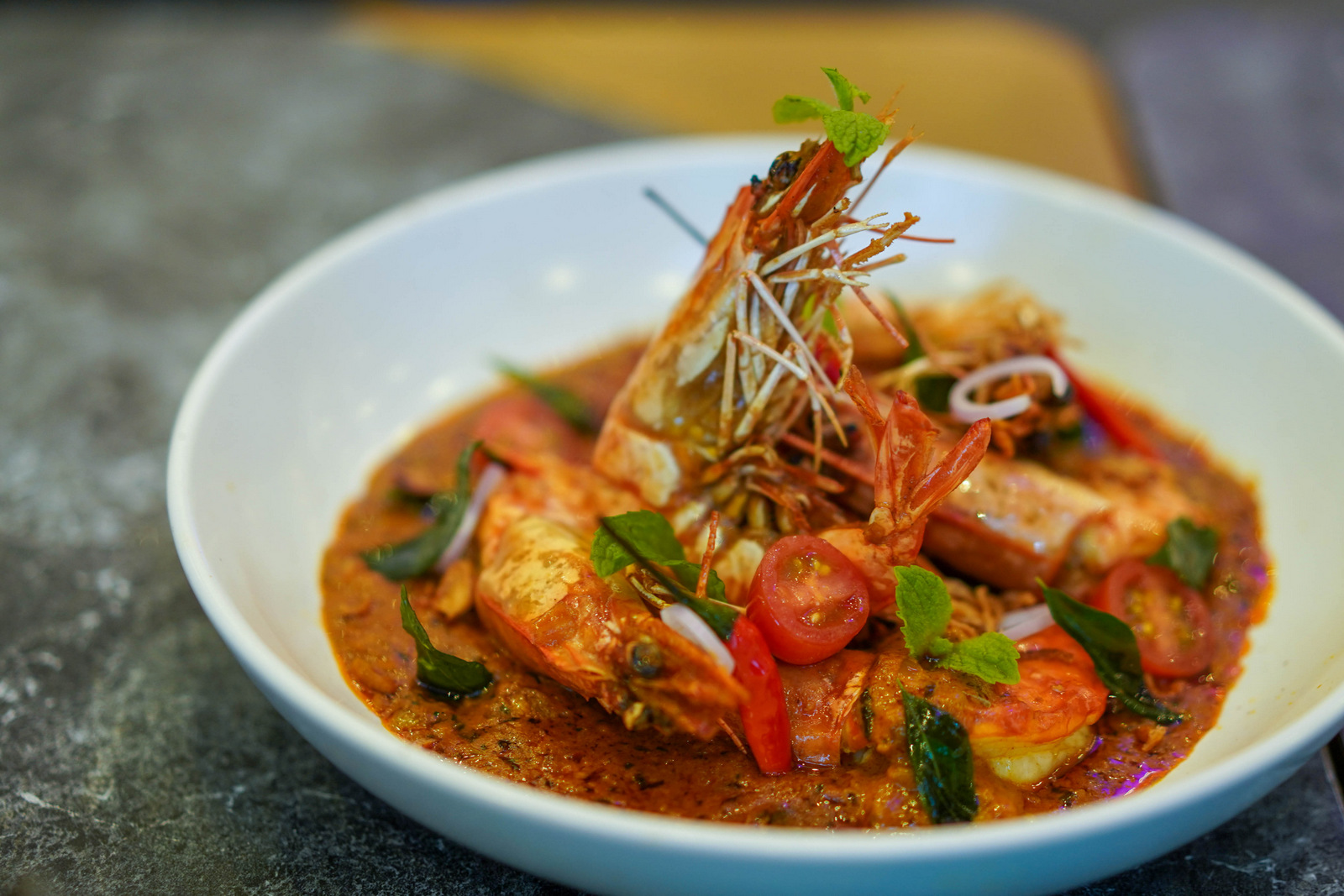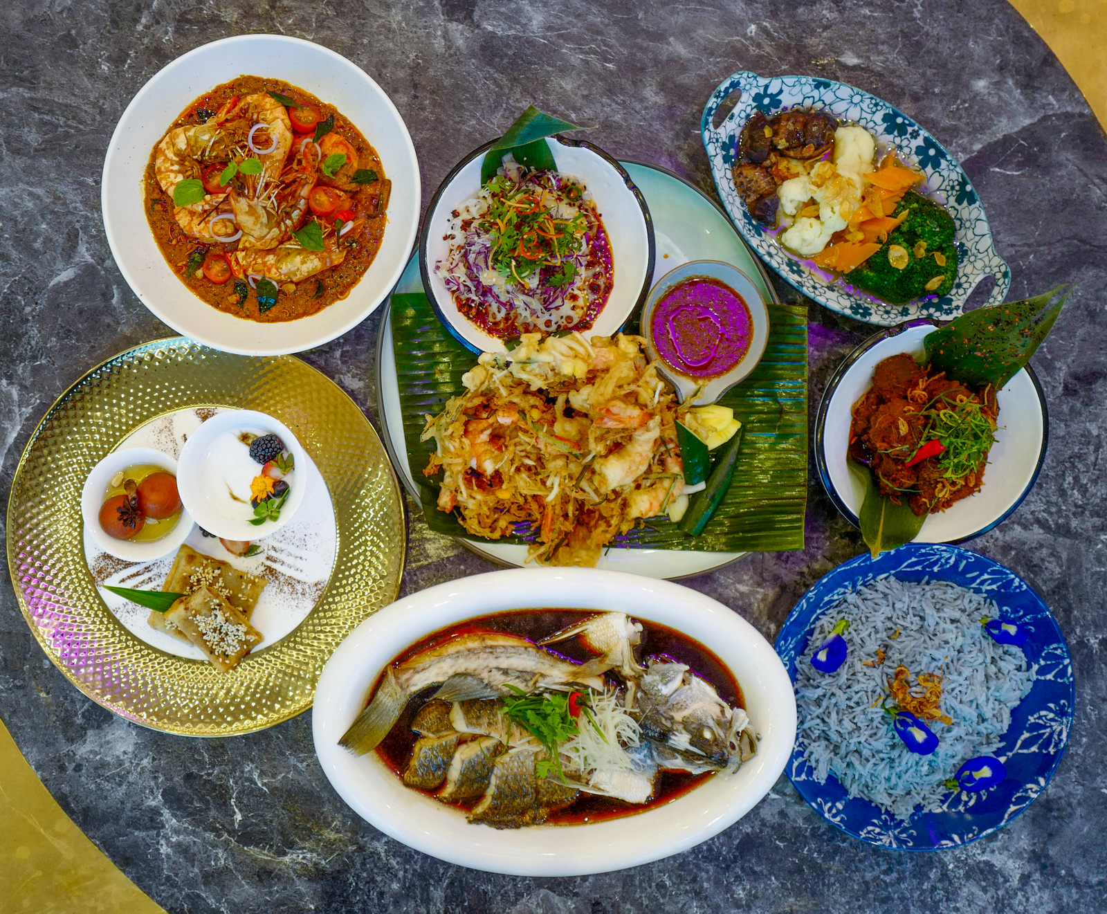 The sea bass, venison and prawns are all fleshy and succulent, prepared to pure perfection, complemented by fibre in the form of stir-fried broccoli and mushrooms, as well as rice in a choice of nasi bunga telang, nasi telur, or nasi putih. A trio of desserts also showcase the best of culinary traditions - som-som, gulab jamun, and red bean pancakes.