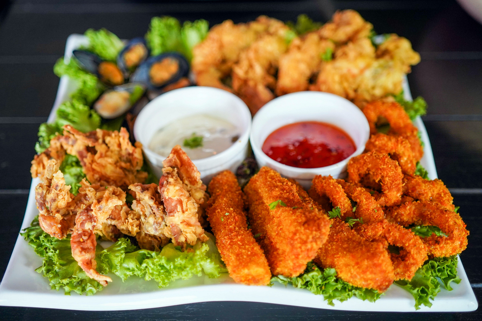 If you love a fisherman's full catch, the Seafood Platter (RM80; also for two to three persons) is another enjoyable order, brimming with tiger prawns, mussels, calamari rings, dory fillets and soft-shell crab. This princely platter makes for fun munching, particularly the large, fleshy prawns with their crunchy batter.