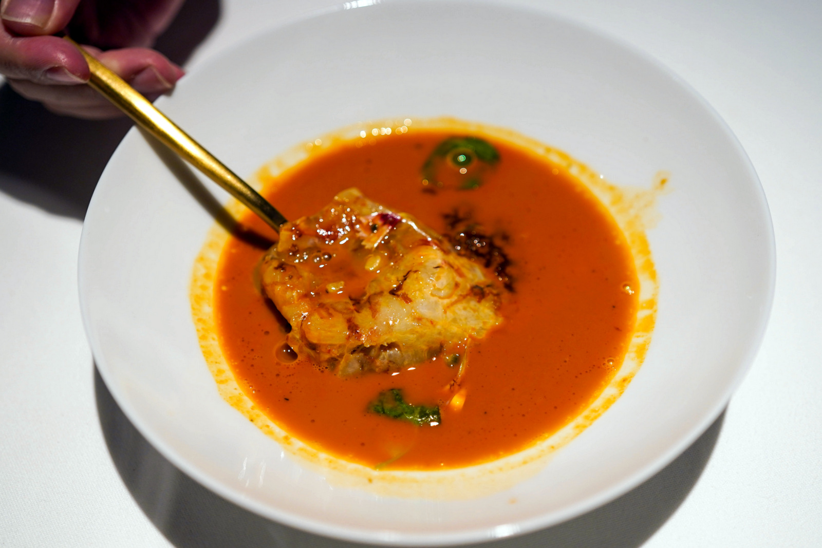 But FLOUR doubles our delight by pouring over a Carabinero prawn bisque that takes a leaf from Western India's prawn curry, spiked with chillies, cumin, fennel, and for the only time in this degustation, tomatoes for a tinge of tang, with oceanic creaminess layering the carpaccio's smooth fleshiness.