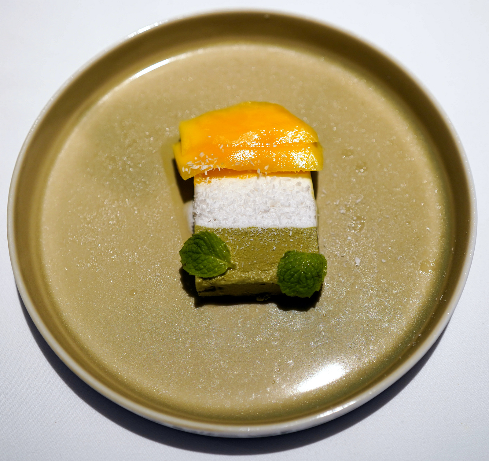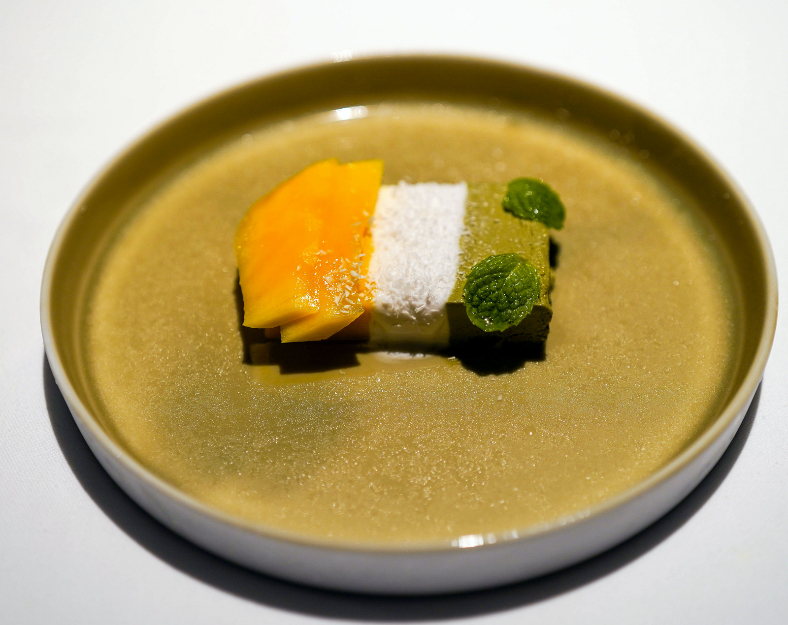 The Cassata bears the name of the Sicilian sponge cake but channels the colours of the Indian flag as an envoy for Mumbai's ice cream parlours. A trifecta of mango, coconut and mint, naturally nectarous with no extraneous sugar, a cool, creative treat to send us out into the night exhilaratingly rejuvenated.
