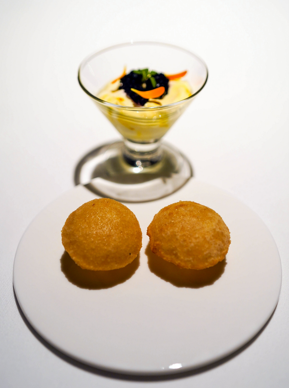 The Beginnings marks our first course, a trio of amuse-bouche served on a branch like nature's harvest.