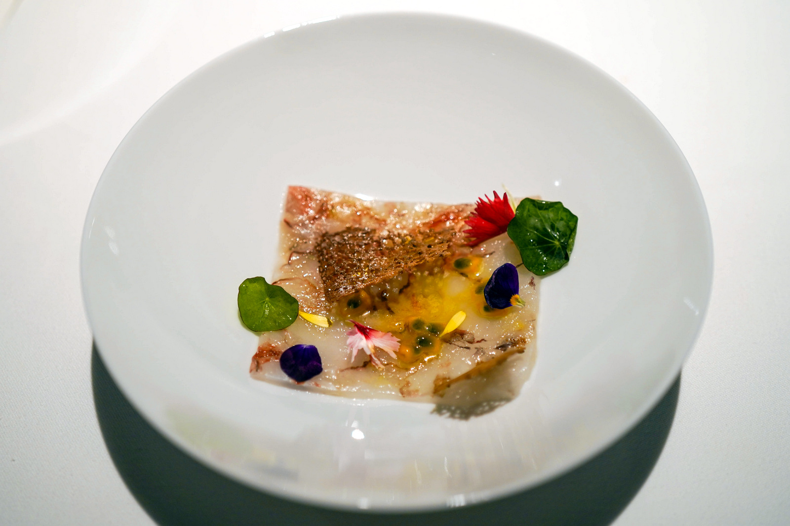 FLOUR's Carabinero prawn carpaccio, its jumbo juiciness surfacing from the deep seas of Spain, looks translucently triumphant enough to devour on its own, the epitome of summertime comfort fare, sprinkled with bright petals.