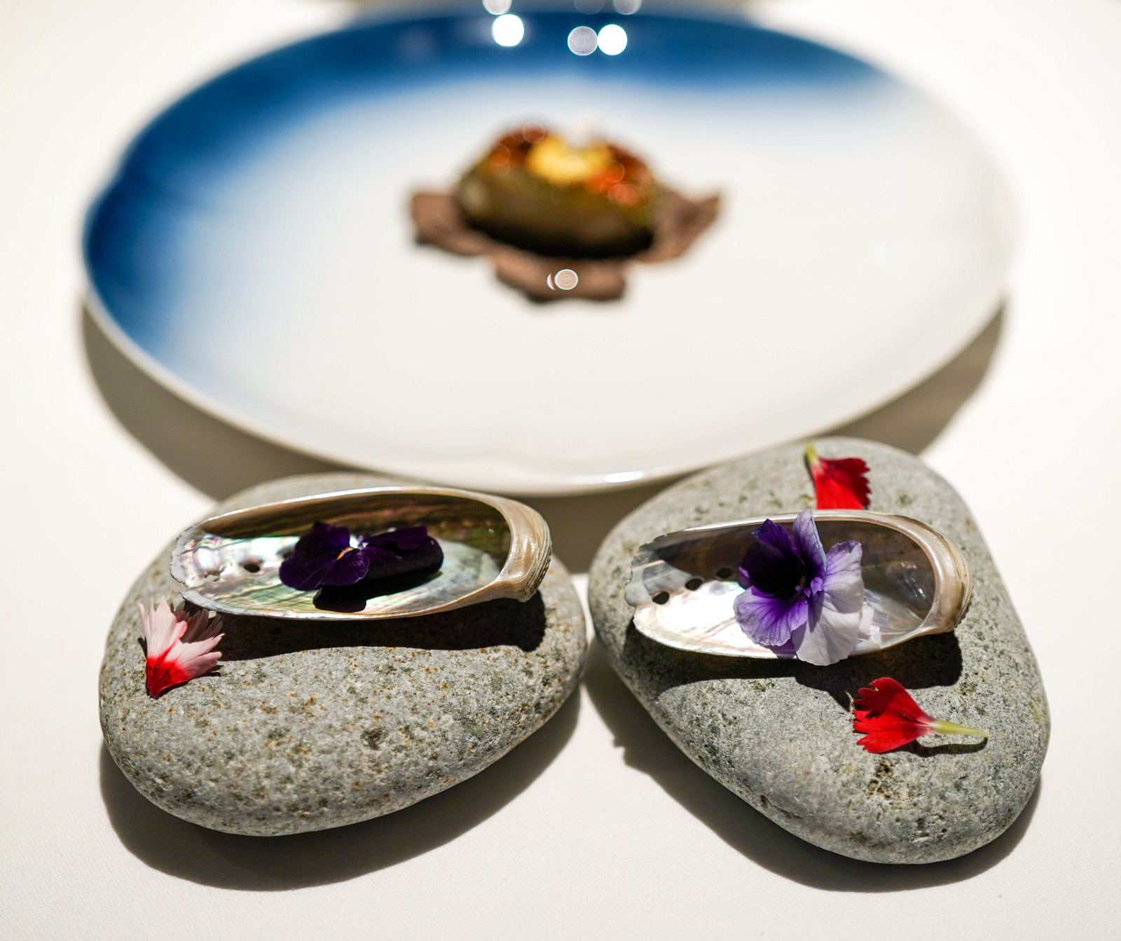 From the waters: A Norwegian mackerel fillet is seared simply, free of added salt and other flavourings, representing the final capture of the nets before the monsoon.