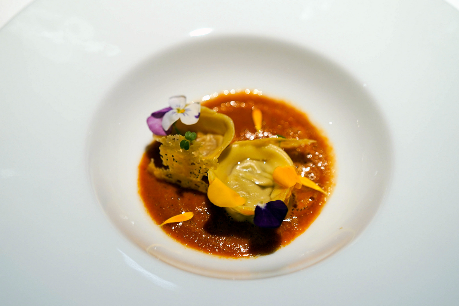 FLOUR has transformed the recipe further, relying on duck marinated over three days with red wine vinegar, cinnamon, bay leaves, garlic cloves and chilli, stuffed into tortellini and topped with Parmesan crisps, rounded out with a blend of coconut milk, duck jus and chilli paste, compelling without cream.