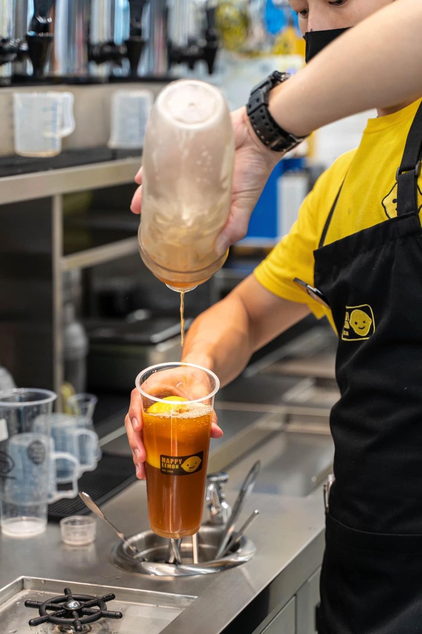 Happy Lemon's team prepares each bottle to order, shaking and pouring it freshly in front of you.