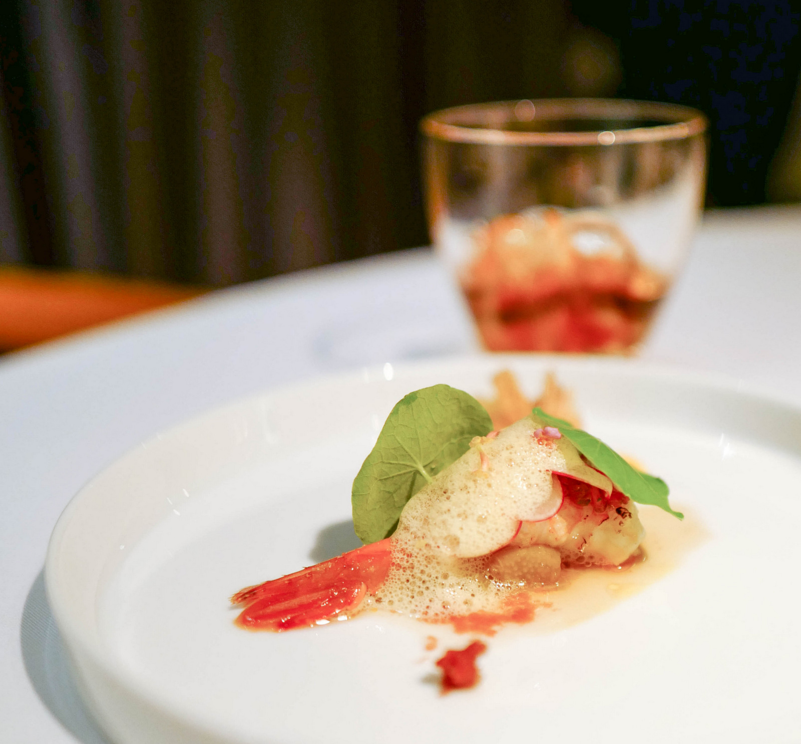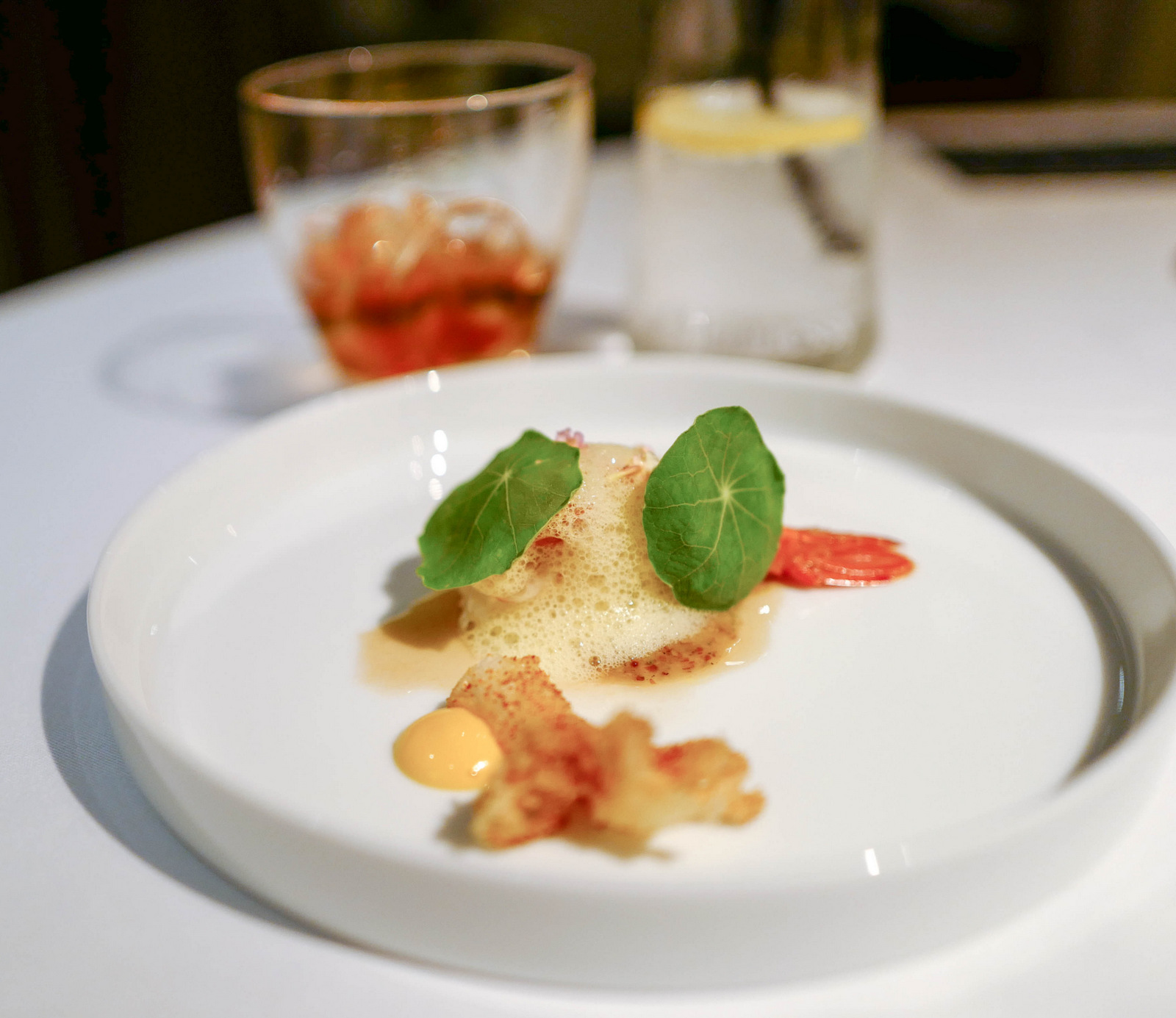 Sweet Notes is the Odyssey's first salvo; each title illustrates the complex facets of Hennessy X.O., served in multiple styles that partner spectacularly well with Darren's meticulously curated recipes. Luscious, lightly cooked botan ebi is plated with heirloom tomato granita & fried leeks for cold-&-hot dynamics of temperature, buoyed by grapefruit foam for acidity, rounded out with konbu, chilli oil & mustard dressing. Take a bite, then perhaps a sip of the Hennessy X.O. (served on the rocks for a gently nuanced start, presented in Baccarat designer Thomas Bastide's iconic X.O. glass), savouring the unique apricot-orange candied notes that come naturally from the maturation of eau de vie in Hennessy's prestigious barrels. It's a playful coupling of food & beverage, proving that the caramel-hued cognac can triumph like a fine wine in chaperoning a meal.