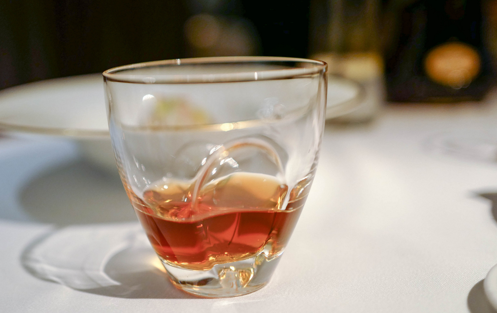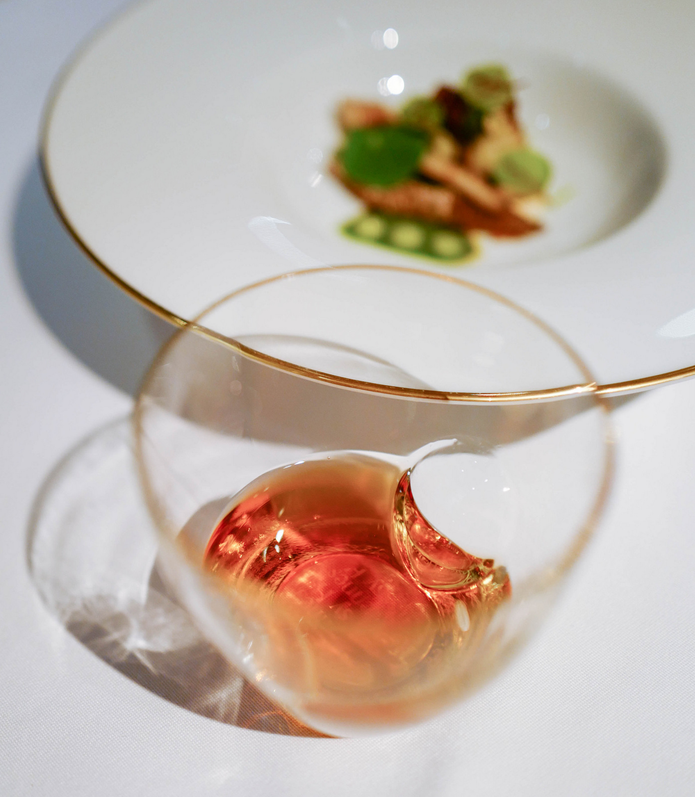Infinite Echo comes next, an evocative name for a genuinely great course. Darren's signature offering of Ogawa bafun uni from Hokkaido with Takao cold somen & truffle celeriac cream is a marvel on its own, but paired with Hennessy X.O. (with a splash of room-temperature water that opens up the cognac further), both become a revelation, a beautiful union between seafood's fresh, creamy minerality with complex, long-aged subtleties of the cognac that linger on the palate with a finish full of character.