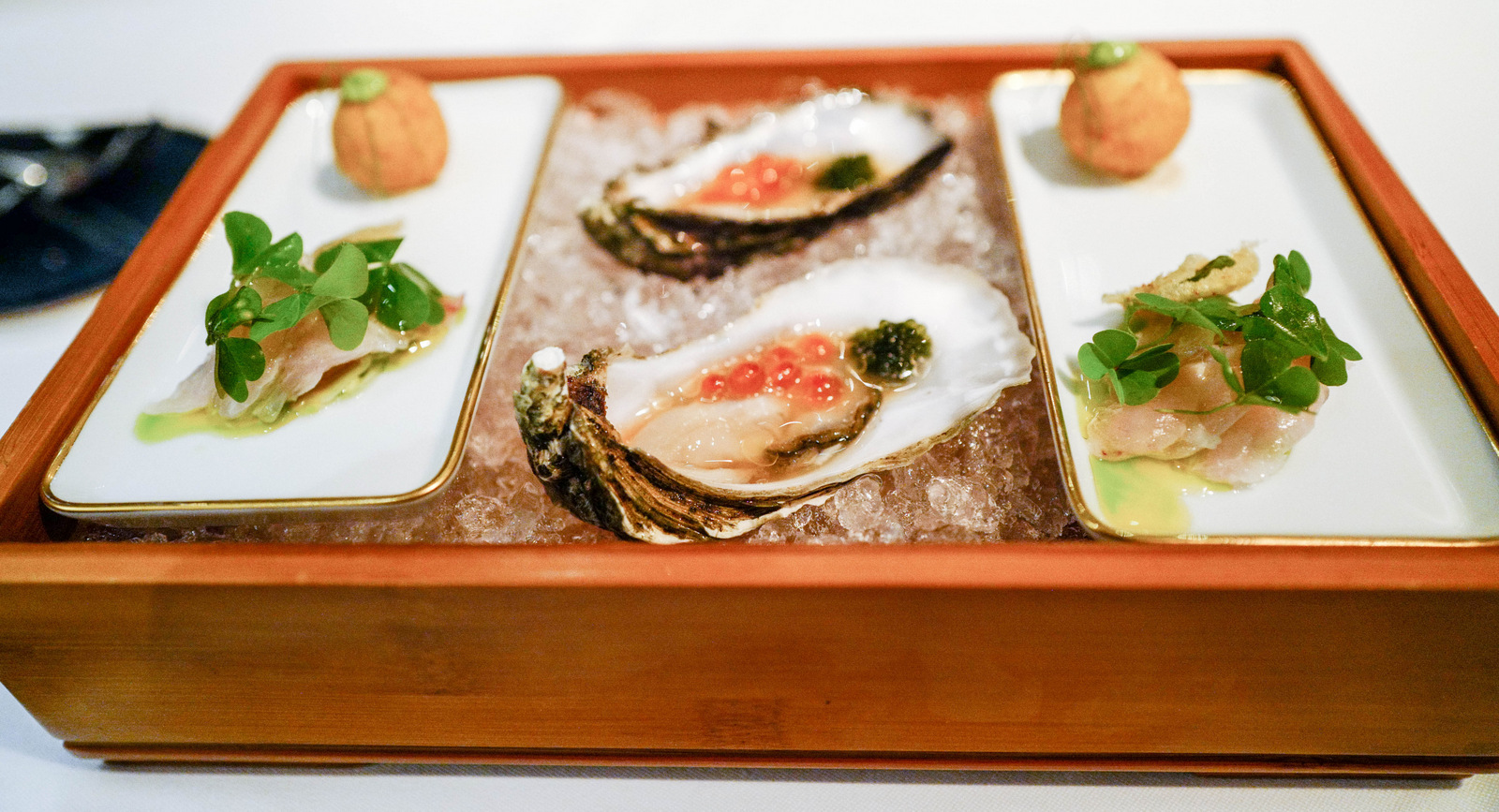 The Hennessy X.O. Odyssey takes place July 18 through August 15 at Darren's DC Restaurant in Taman Tun Dr Ismail, a suitably elegant setting for a dinner this delightful. Having cooked professionally for 14 years & trained in France for two, Darren was handpicked by the House of Hennessy to helm this year's Malaysian arc of its global X.O. Odyssey campaign, which explores the contours & contrasts of cognac like never before. Darren's prelude to the main Hennessy meal is a reassuring reflection of his skills & artistry, whetting the appetite via Cameron Highlands beefsteak heirloom tomatoes with olive oil & DC's house-baked bread & croissants, followed by Irish nugget oysters with ikura, umi budo seaweed & ponzu sauce; local sole, ceviche-style, with basil oil, wood sorrels & tempura of curry leaf; & potato croquettes with green gazpacho.