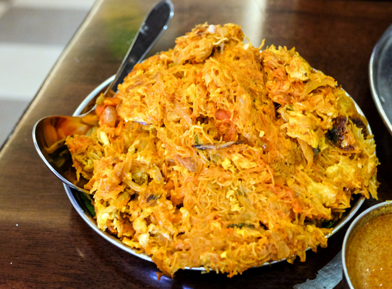 Indian Spices menu is extensive enough that youre bound to discover several intriguing items to devour: Try the fried mutton brains (RM13), which bear the same consistency as scrambled eggs, or the Chettinad-spice-cooked mutton liver, characterised by the unmistakable but relatively mellow flavour of liver (RM13). Quail biryani (RM17) is suitable for sharing - a competent version amid the avalanche of biryani specialists in Brickfields. Our favourite order here might be the egg uttapam, light, fluffy & flavoursome like the most satisfying sort of pancake, followed by the egg idiyappam, served fresh & steaming-hot.