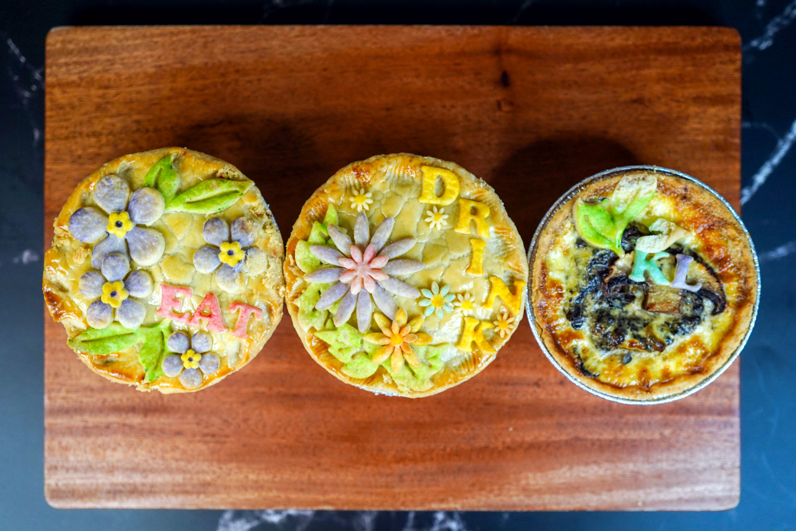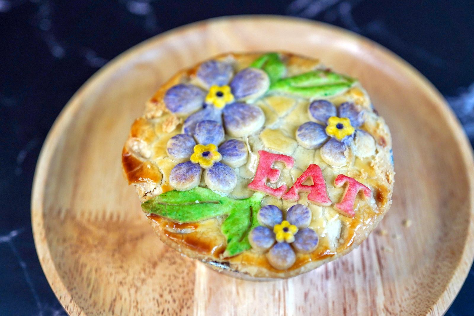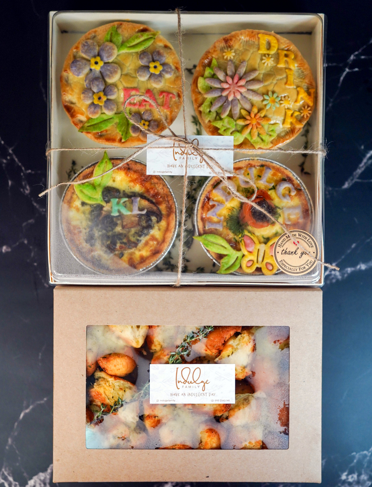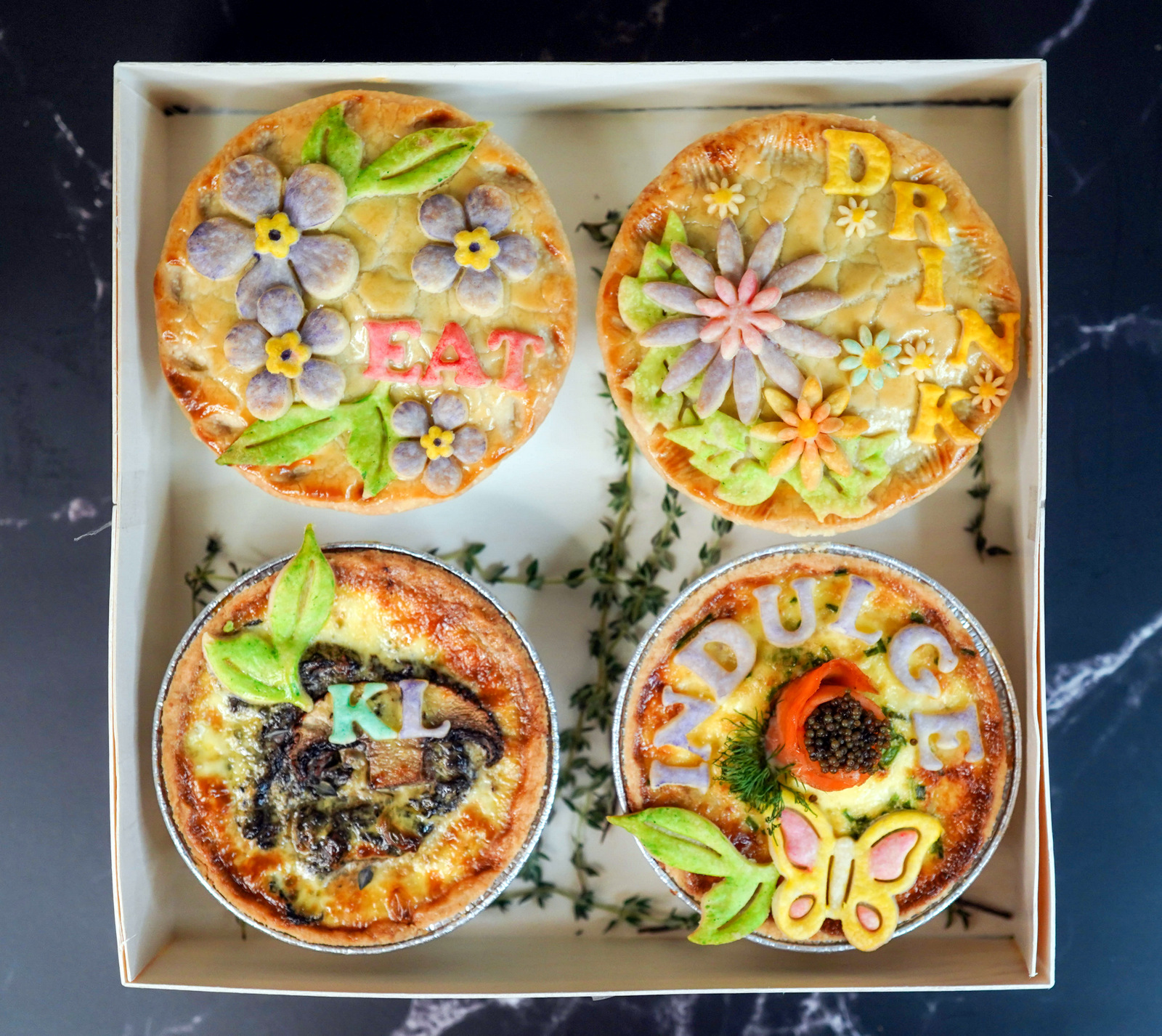 Love at first sight: Our pies and quiches came crowned with vibrantly handcrafted lettering on their crust, plus colourfully hand-painted, intricate images of flowers, leafs and butterflies - part of Indulge Family's custom designs by request (available at a RM5 surcharge). Decorated to impress, they make for great gifts.