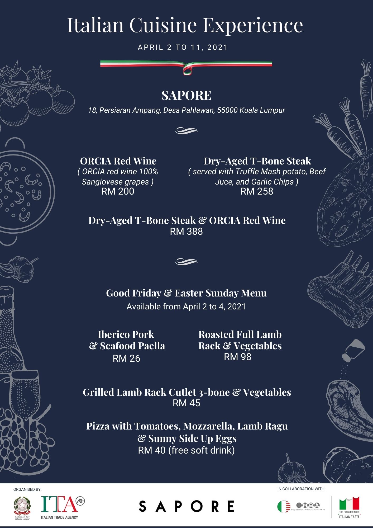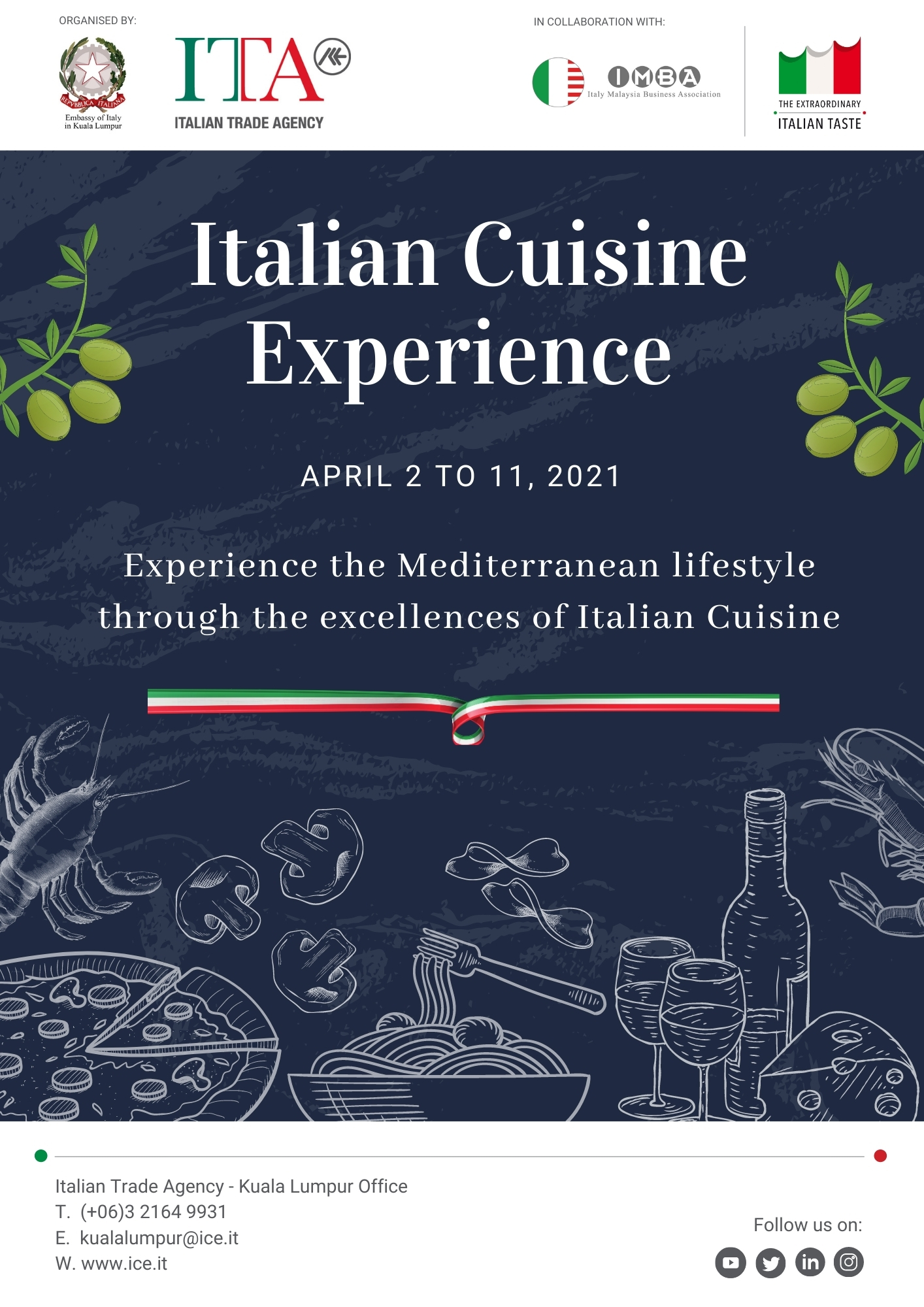 Visit ice.it/en/markets/malaysia/italian-cuisine-experience-2-11-april-2021 to book and experience your authentic Italian meal today.