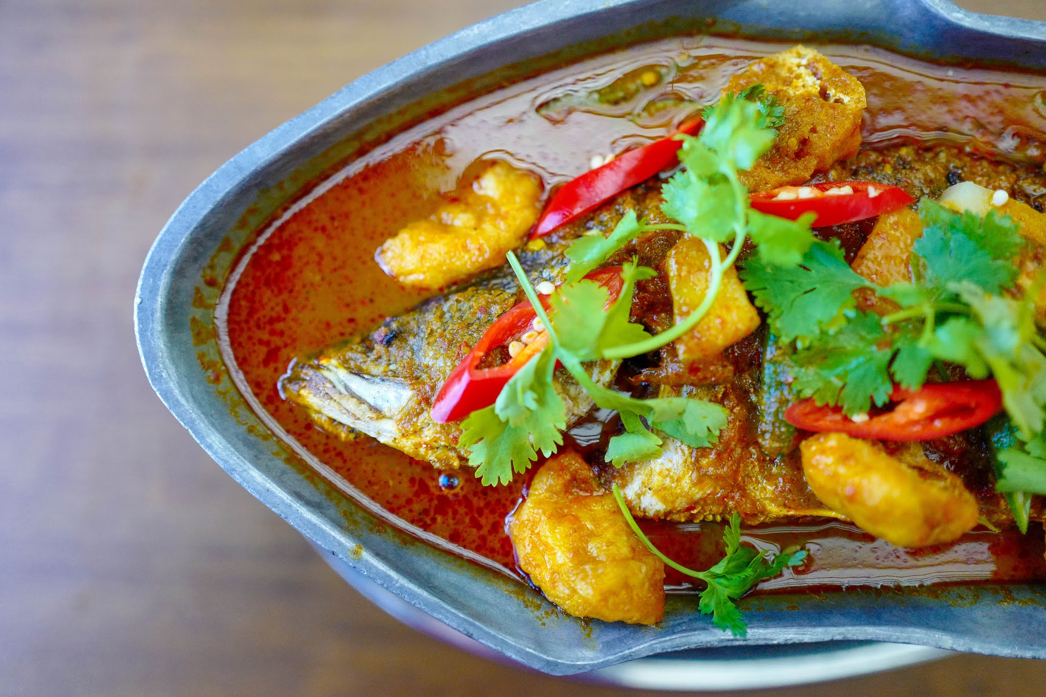 The Assam Pedas Fish (RM60) is another should-try for fans of tender, flaky seabass. Kanteen does juicy justice to the fish, moist and market-fresh, making it sultry without drowning out its natural flavours in spices or flavourings. This is the ideal hot dish during a cold thunderstorm, with a mellow tamarind tang to enliven the evening. Pair with a serving of steamed rice for each person (RM2.50). Lemongrass fish and ginger soy fish are also available for folks who prefer their fish without chillies.