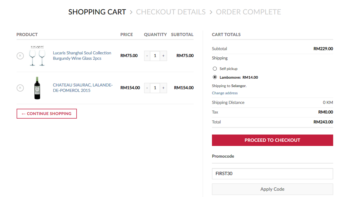 That's all you need to know to start shopping at lavowine.com now. LavoWine is running an introductory promotion of RM30 off for your first purchase - just type in FIRST30 under Promocode on the checkout page.