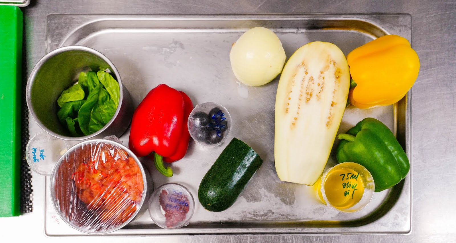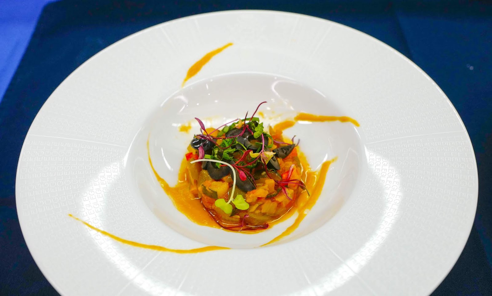 The next test was meticulously slicing eggplants, zucchini and plum tomatoes into a specific thickness that had to be layered on the eggplant skins. This step was a challenge for me, an amateur lacking the dexterity demanded of French cooking, but repetition slowly led to improvement, and a compliment from Chef Sylvain about my final product was sweet validation.