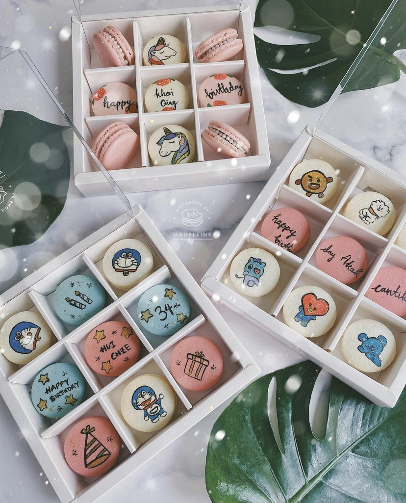 If you've received customised macarons for Aidilfitri etched with portraits of ketupat or Christmas macarons that looked like Santa and snowmen, you might have already had a first-hand look at Macarons by Madeleine. If you're seeking a fun but thoughtful present to brighten up someone's month, let Madeleine make you some extra-special macarons, personalised with playful themes, words and images.