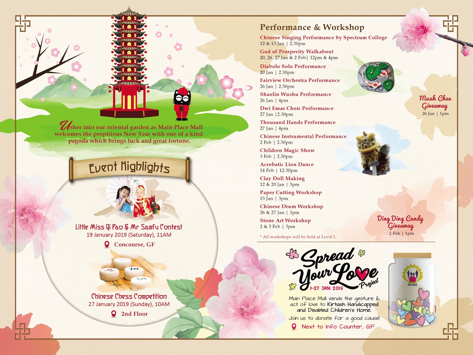 The splendour of the Lunar New Year has blossomed at Main Place Mall, transformed into an Oriental Sanctuary of Spring throughout the weeks ahead. From activities like acrobatic lion dances and orchestral performances to Chinese drum workshops and God of Prosperity walkabouts, plus Oriental Ang Pao Sets and Dining Sets available for redemption, this is the one-stop destination in Subang for festive fun with family and friends.