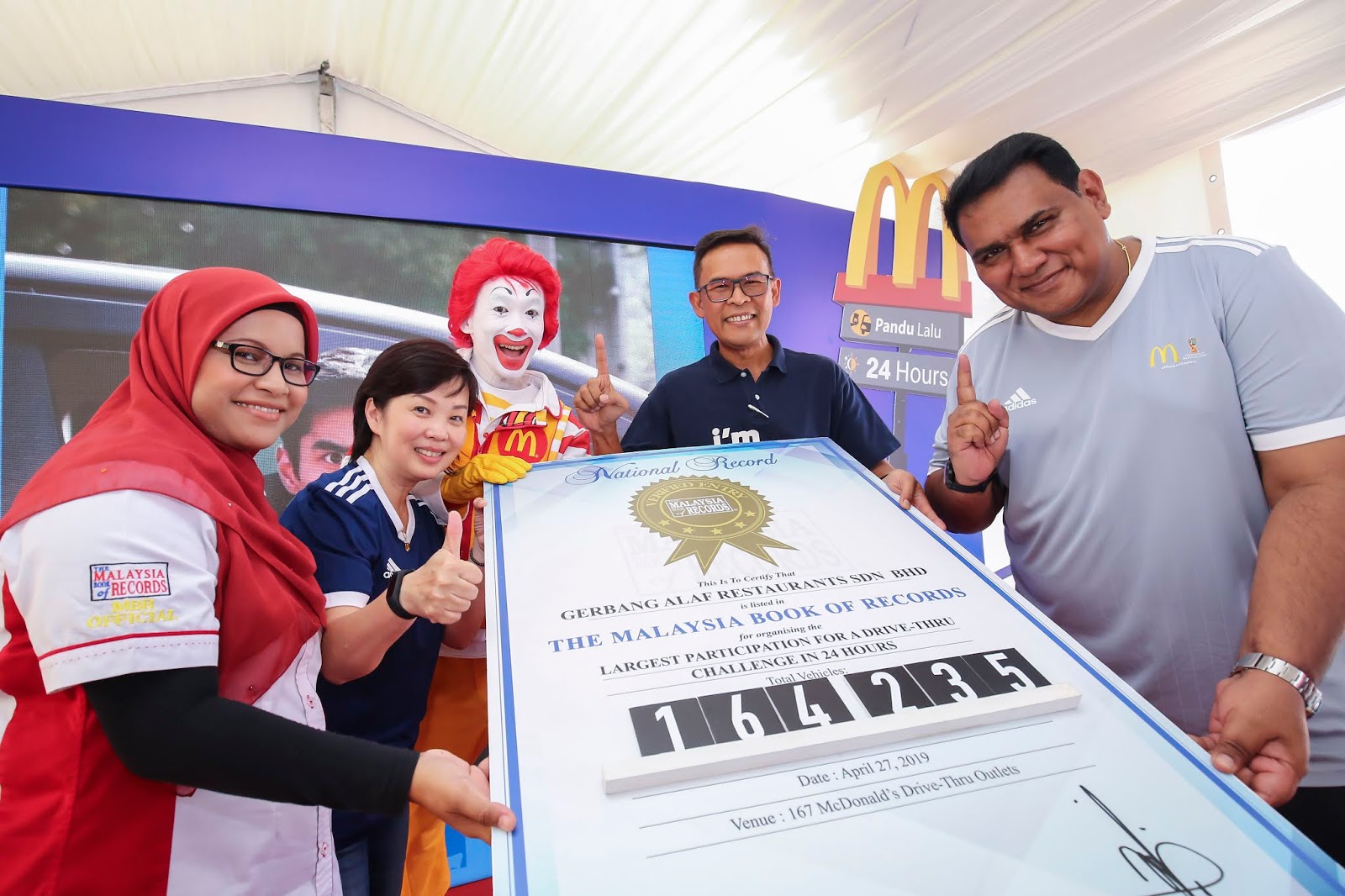 McDonald’s Malaysia also successfully set a new record on 27 April for the highest vehicle count accessing McDonald’s Drive-Thru restaurants over the course of 24 hours, with a total of 164,235 vehicles. This led the company to be officially recognised by the Malaysia Book of Records for achieving the “Largest Participation for a Drive-Thru Challenge in 24 Hours."