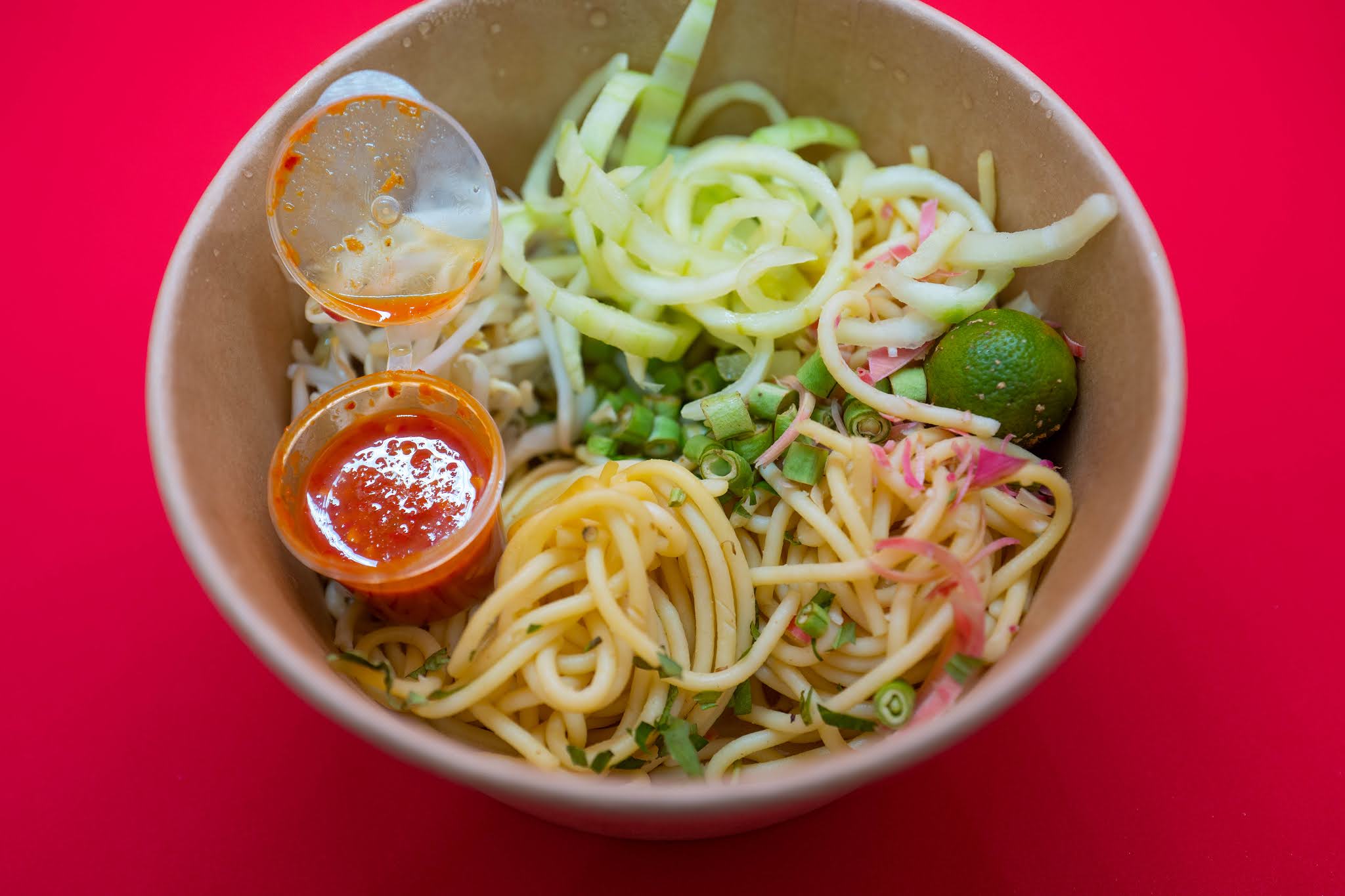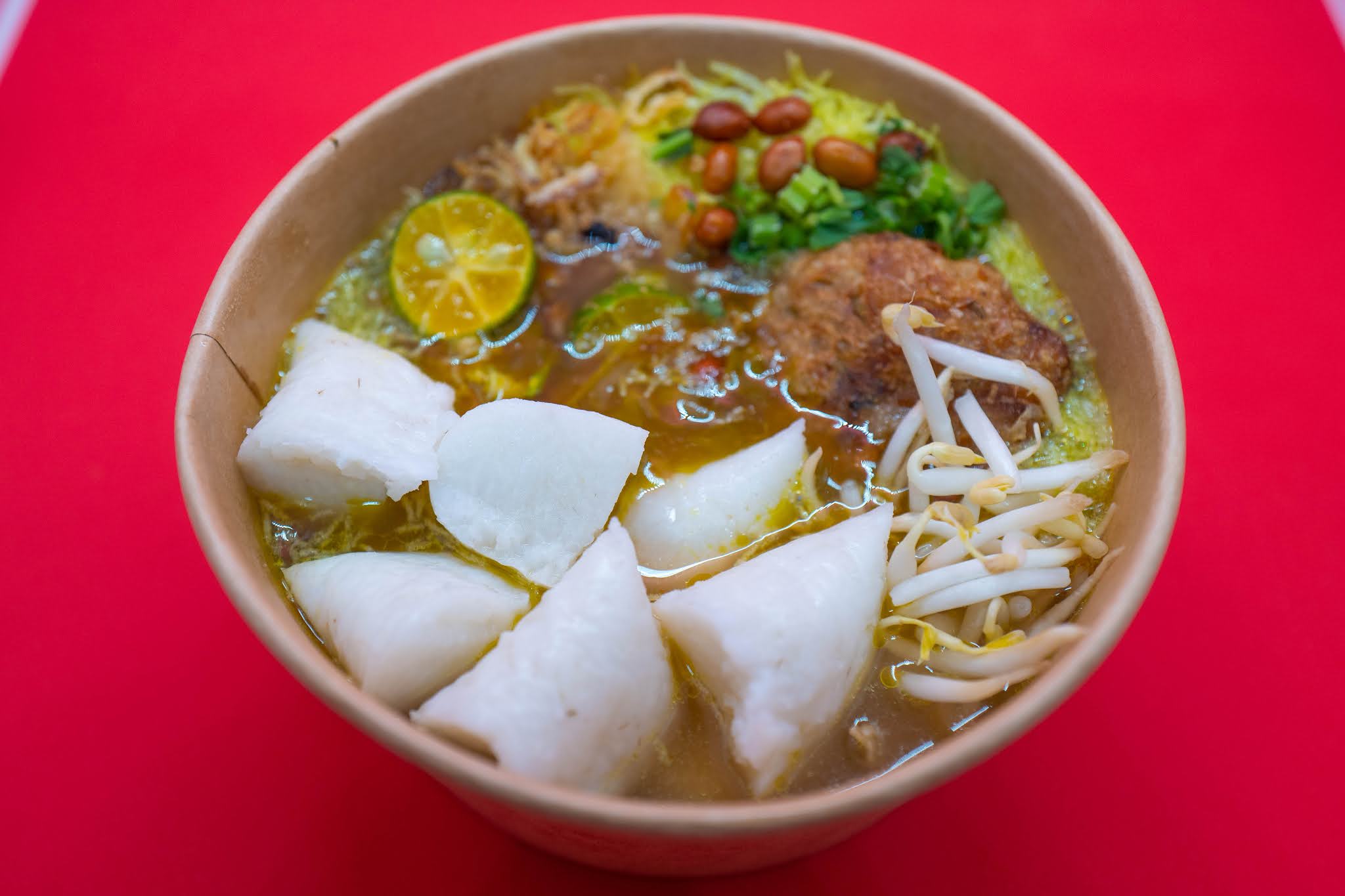 The Laksa Joho Mamatok should placate residents of Malaysia's southernmost state for authenticity (regular price RM16). San Remo spaghetti with cucumbers, long beans, bunga kantan and daun kesum in a tantalisingly textured fish-based gravy of ikan parang, still lovely after delivery; the accompanying sambal belacan is extra-punchy, so be cautious while adding it.