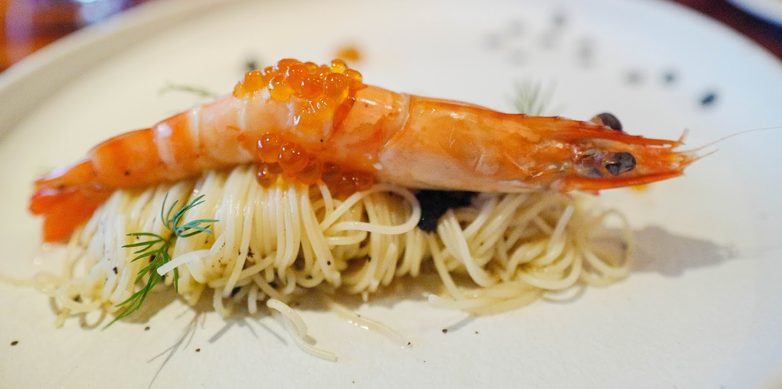 For a scintillating duet of seafood-based starters, order the mackerel together with the tiger prawn capellini - the delicately ambrosial sous-vide crustacean crowns a firm-to-the-bite twirl of chilled blanched pasta, made aromatic with nuances of truffles and briny with pearls of salmon roe, rounded out with the spice of pink peppercorns and umami of a dashi stock (RM35).