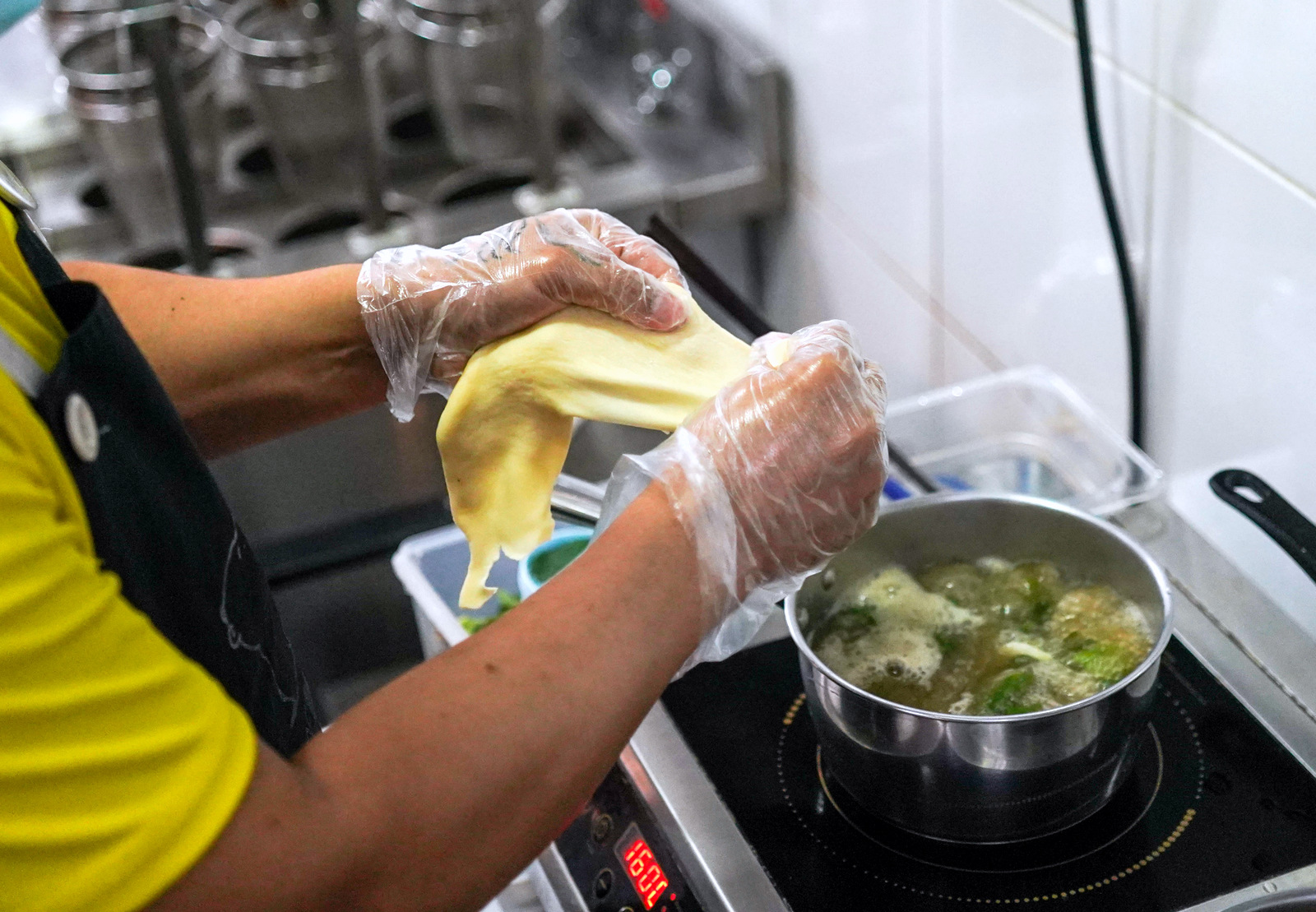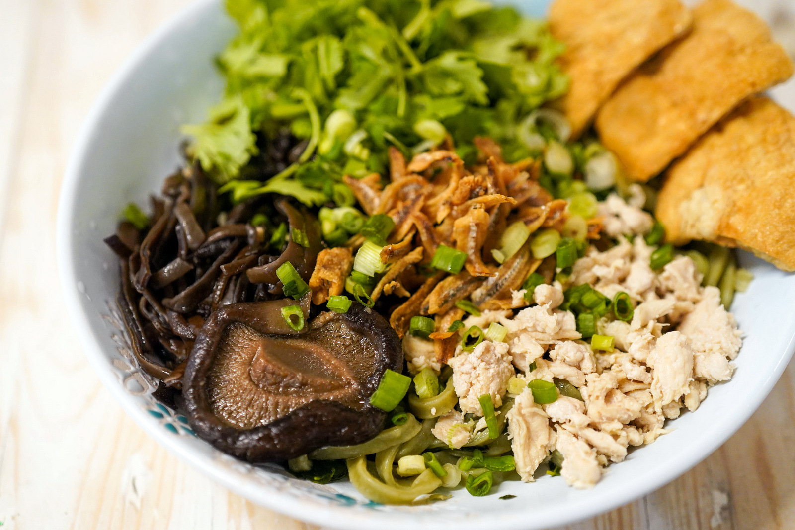 True to Joseph's Hakka perspective, these pan mee flat noodles are hand-torn, not machine-pressed, resulting in a more natural, rustically authentic texture. It takes a month or two of meticulous training to get this right, harnessing a technique akin to pulling pizza dough. The noodles are vacuum-packed in Noodle Shack's dedicated central kitchen to ensure freshness across all branches.