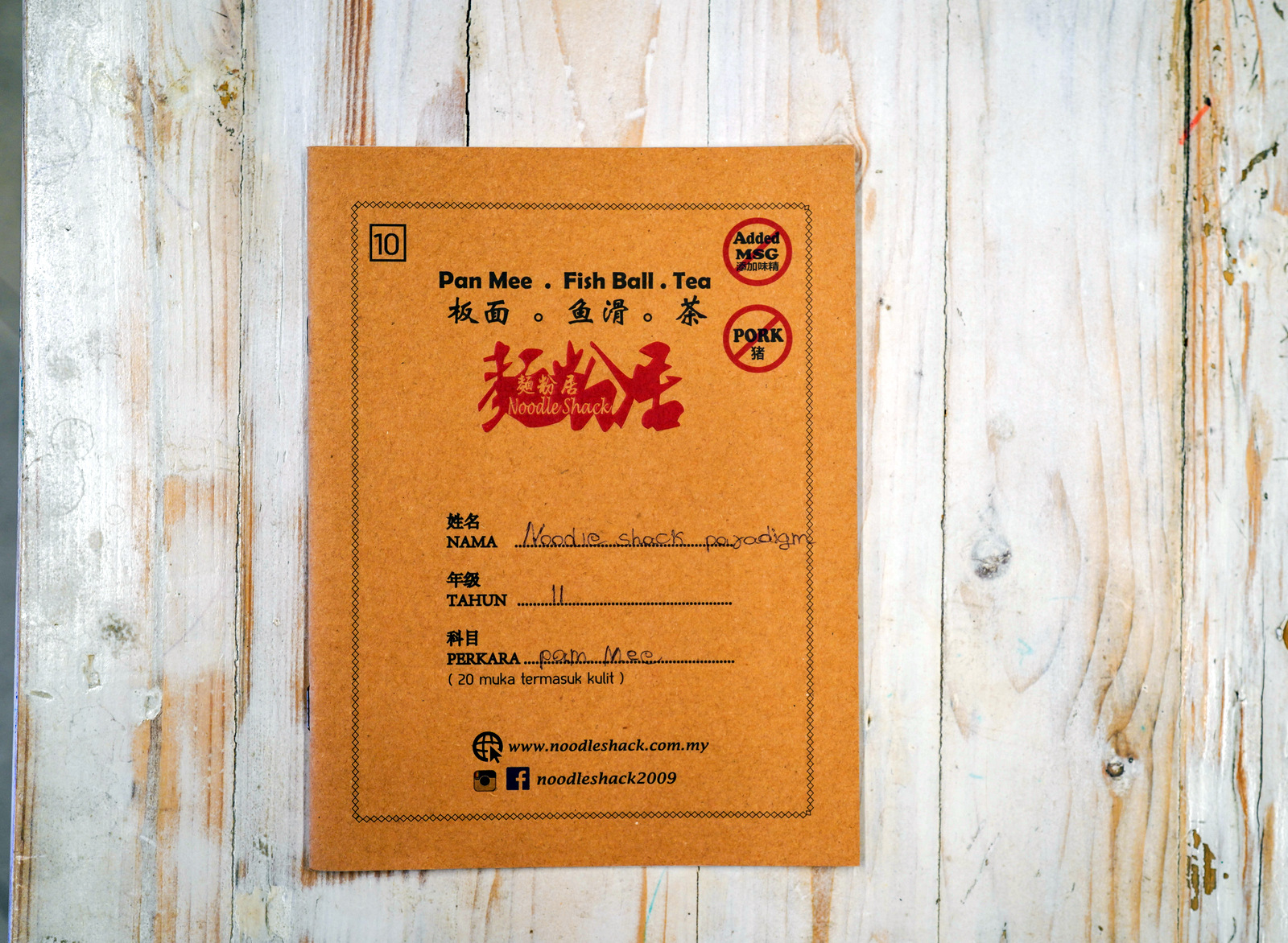 Browse through the playful menu, created to resemble a school exercise book, made from recycled material. You'll discover everything from hot and spicy noodles to noodles with Hakka salted fish, assorted mushrooms, lor mee-style fishballs, or seaweed fishballs; many can be ordered with broth or dry. There's even noodles in soy milk curry; you can customise all the noodles with add-ons of eggs, shrimp, beancurd sheets, mushroom fungus and more.