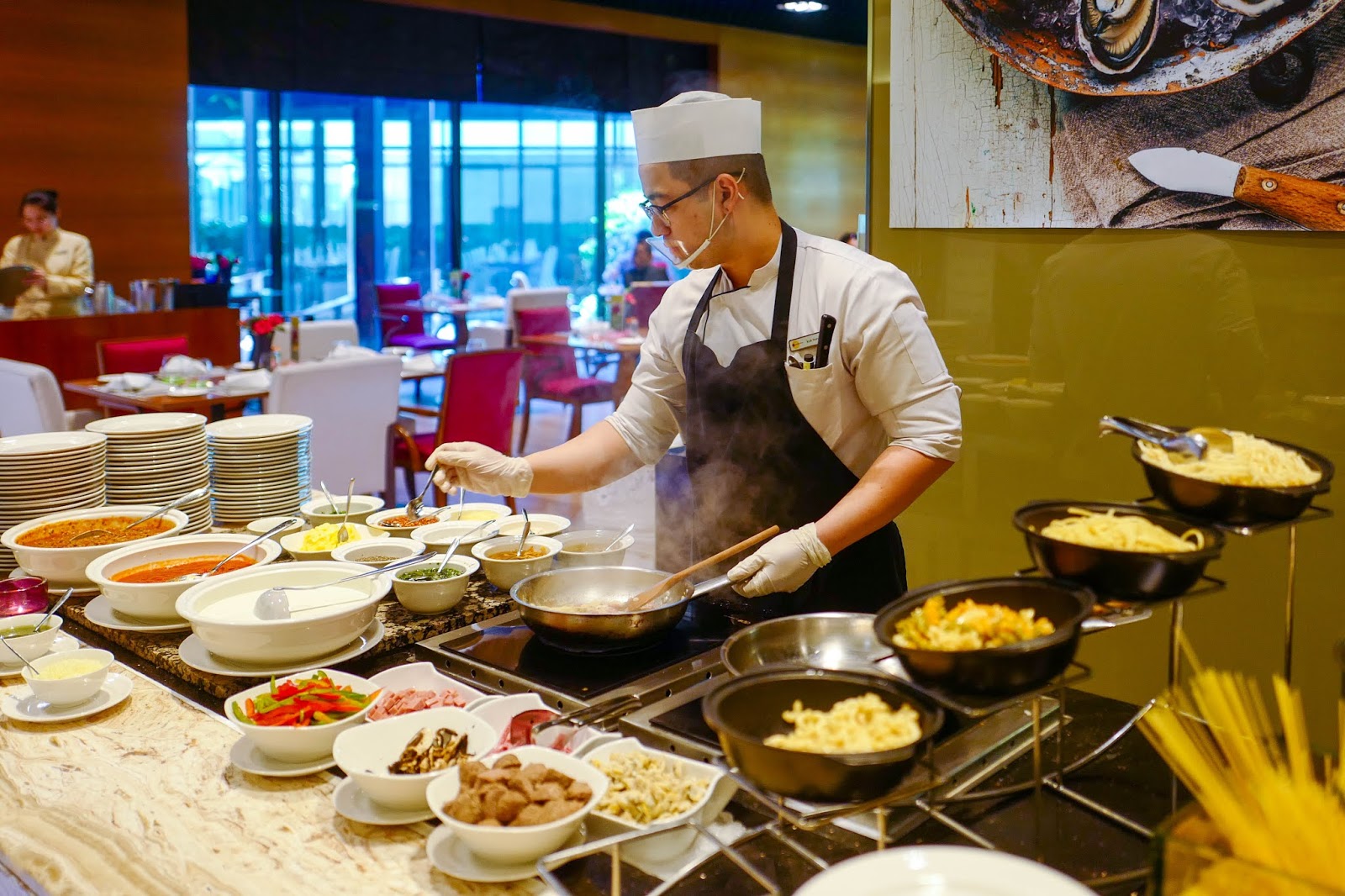 Beyond beef, One World Hotel's buffets promise plenty of poultry pleasure too: Stop by the chicken rice stall for not only steamed or roast chicken but roast duck too, supplying our fix of Chinatown hawker temptations in a much more comfortable setting, with a lovely, leafy view of the hotel's gardens with water features.
