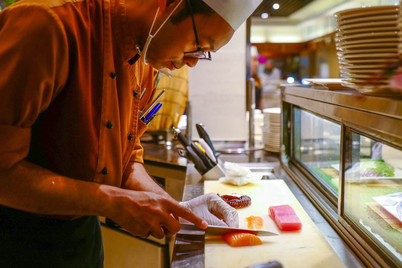 The Japanese section doesn't disappoint, with salmon, tuna and octopus sliced to order, alongside grilled fish and sushi.